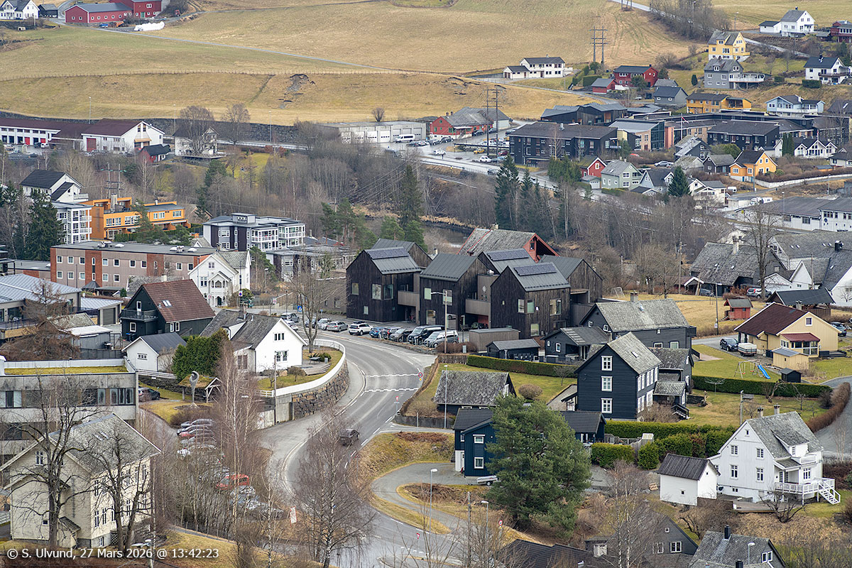 Nokre bileter mot Voss (sentrum) sett frå Mølsterberget. Ein fin dag med temperatur som har lege mellom +4C og +11C.