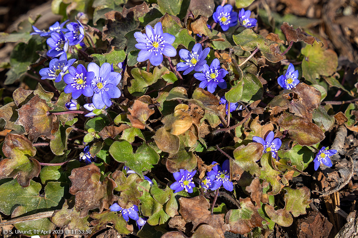 Blåveisen trivst godt i den fine vårsola, 01. april 2023, 11:53, +5C (Hageblomar, Flora)Tvinne, 01. april 2023, 12:33 (Tvinde, Skulestadmo)Fletre, 01. april 2023, 12:42 (Skulestadmo)