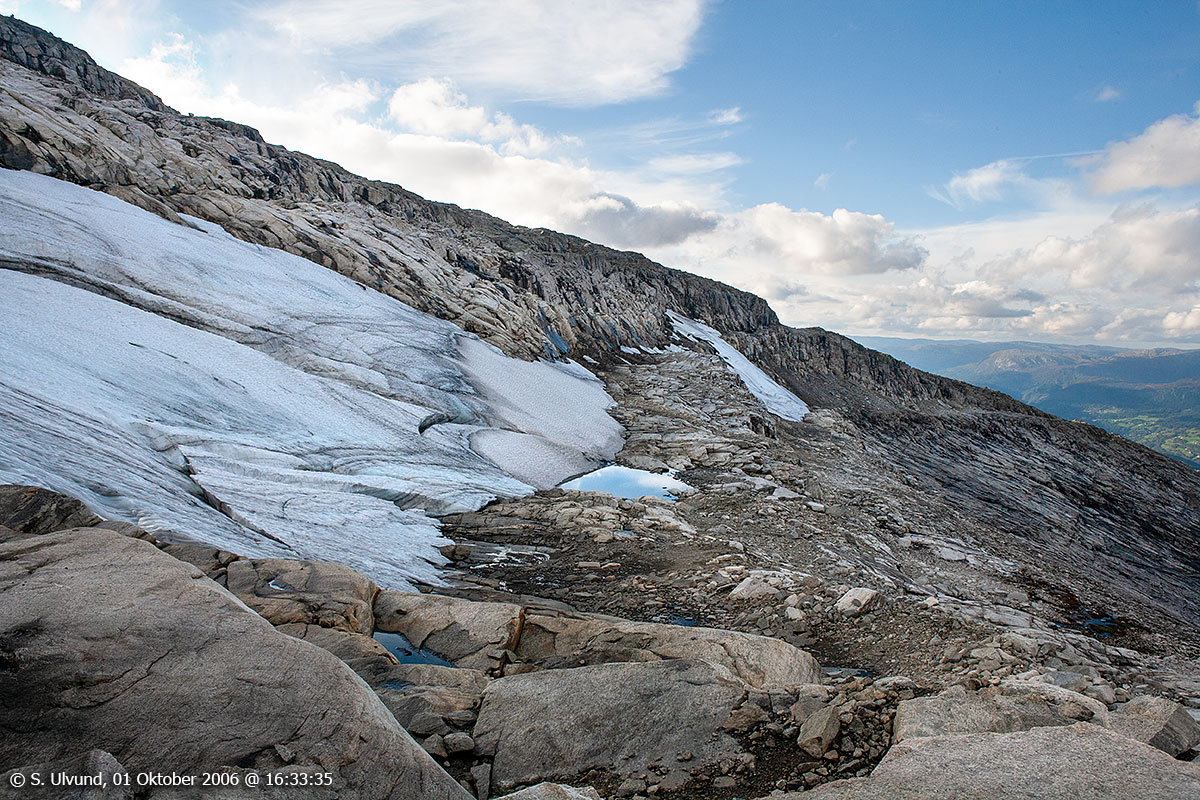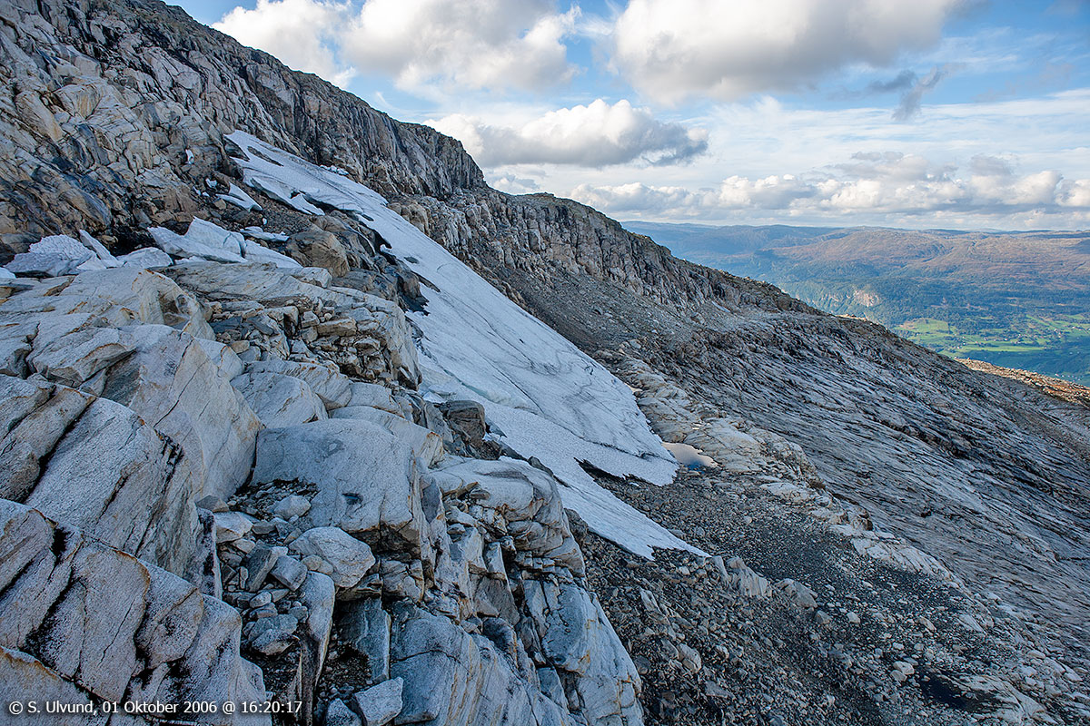 01.10.2006 – Gråsidetoppen Views: 54 Bilete av snøfonna like under Gråsidetoppen som i år er rekord liten. FacebookTwitterEmail