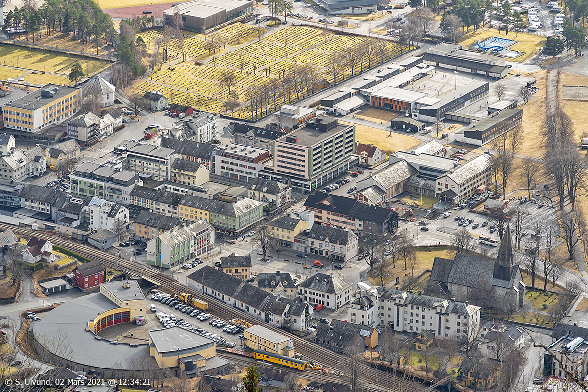 Voss frå Hanguren, 02. mars 2021, 12:20, +6C (Hangursrestauranten)Voss sentrum frå Hanguren, 02. mars 2021, 12:34, +6C (Hangursrestauranten)Vangskyrkja, Tinghusplassen og Tinghuset sett ovanfor Mølster, 02. mars 2021, 12:46, +6CVoss frå Giljavegen, 02. mars 2021, 15:20, +7C