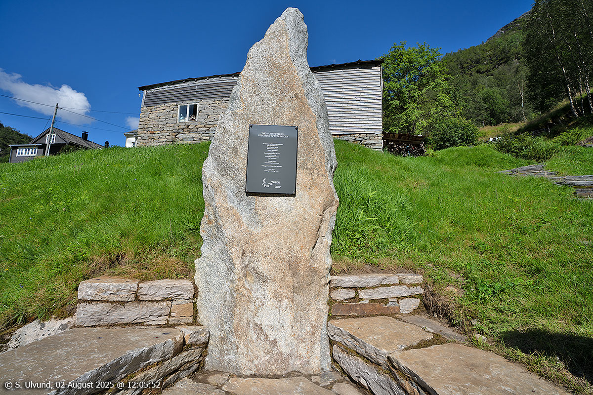 Plakett med takk for støtte til utbetring av stølsvegen.