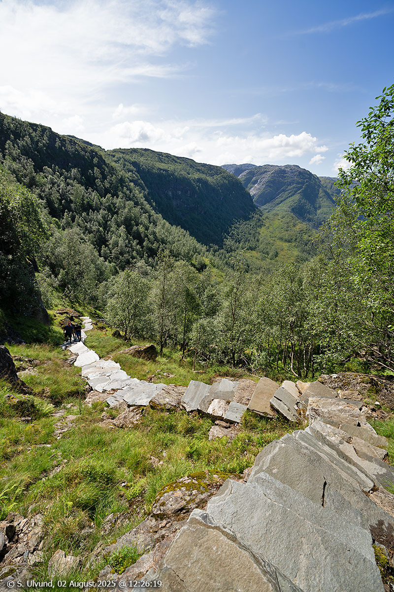 På veg oppover mot Kvikebu med utsyn mot Yksendalen, 02. august 2025, 12:30