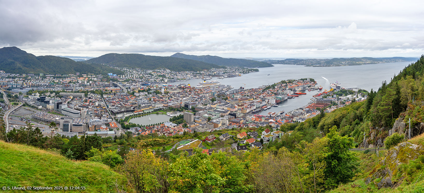 Panorama utsyn frå Fløyen, 02. september 2025 (Bergen)