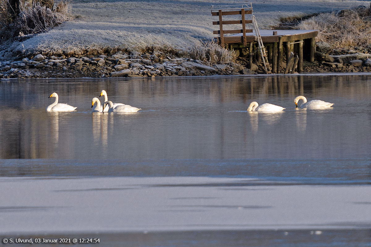 Melsvatnet med Songsvaner (Cygnus cygnus), 03. januar 2021, 12:24, -7C (Skulestadmo Fauna Fuglar)Songsvaner (Cygnus cygnus) på Melsvatnet, 03. januar 2021, 12:24, -7C (Skulestadmo Fauna Fuglar)Stokkender (Anas platyrhynchos) på Melsvatnet, 03. januar 2021, 12:29, -7C (Skulestadmo Fauna Fuglar)Skulestadmo mot Bavallen sett frå Øvsthus, 03. januar 2021, 12:35 (Kvitheim Skjerpe Tråstølen Slettafjellet)Saue Camping, 03. januar 2021, 12:39 (Saue Borstrondi Blikberg)Lønahorgi sett frå Skulestadmo med skispor nedover på framsida, 03. januar 2021, 12:38