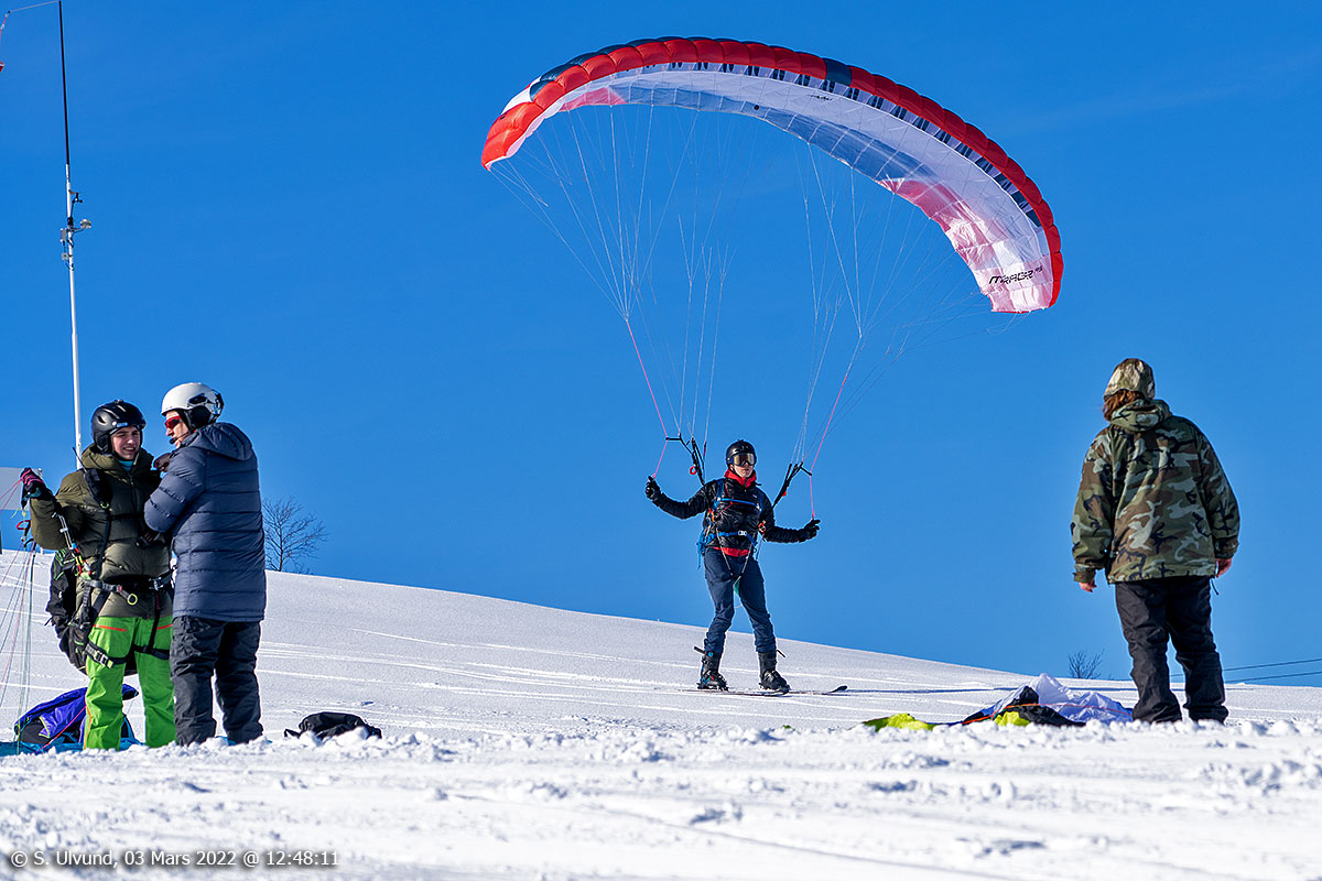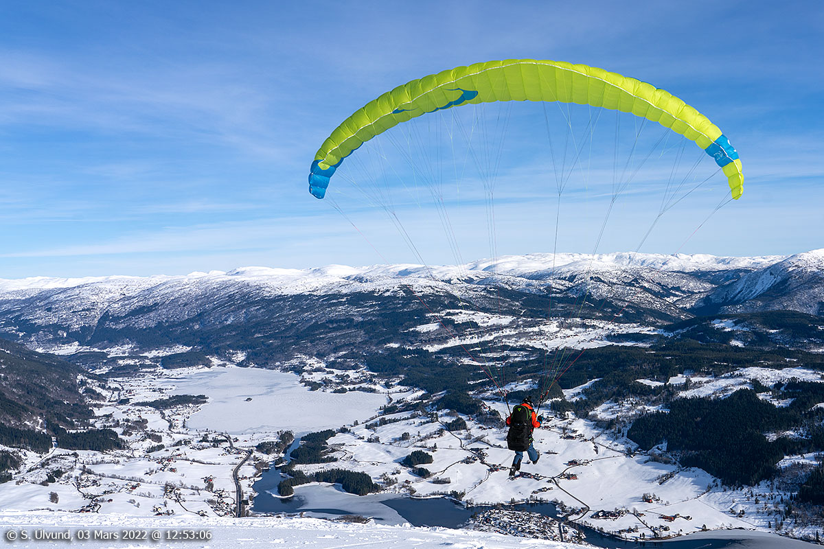 Paraglidere på Hangurstoppen, 03. mars 2022, 12:48 (Voss)