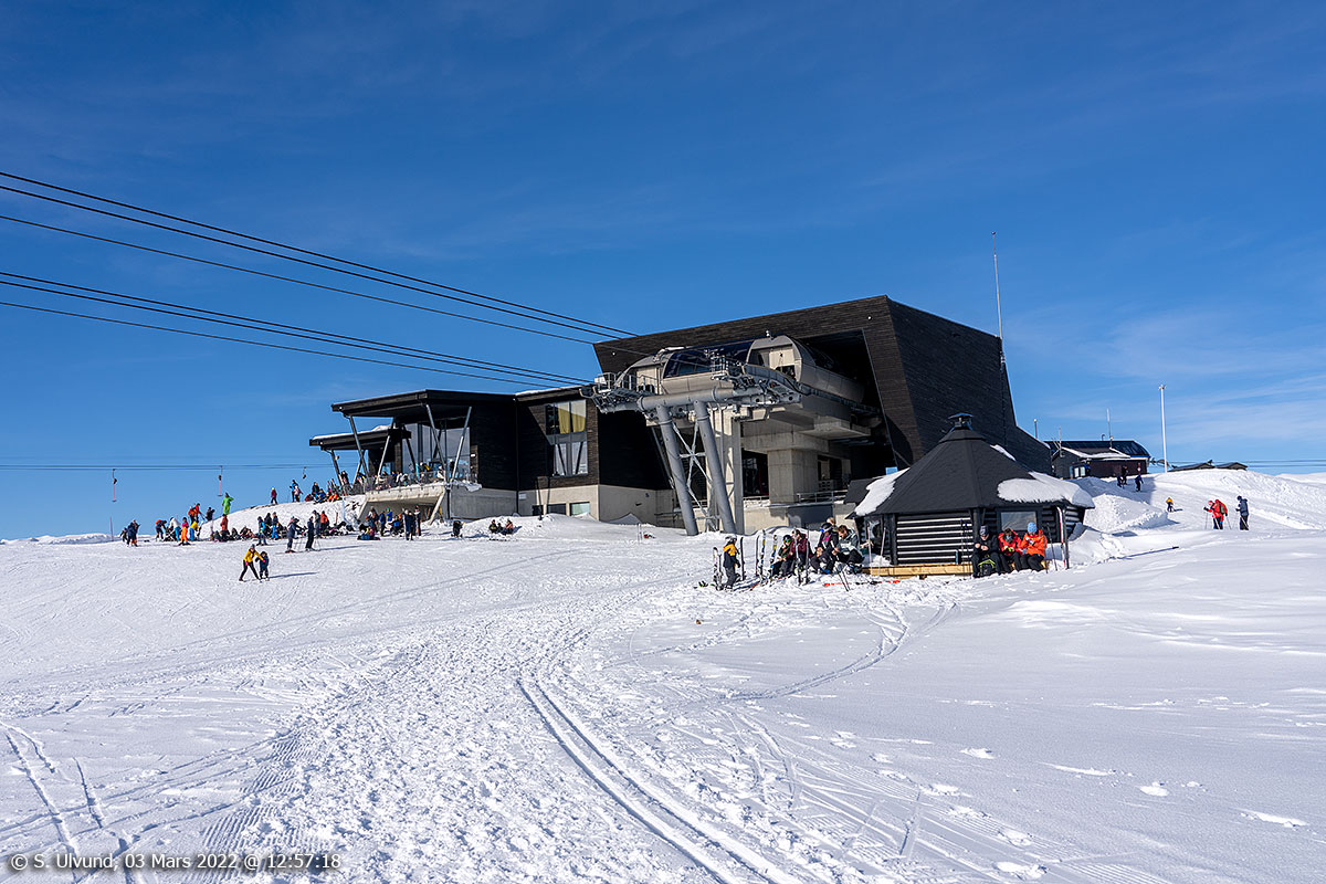 Hangurstoppen mot Voss Gondol og Hangurstoppen Restaurant, 03. mars 2022, 13:03 (Hanguren, Voss)