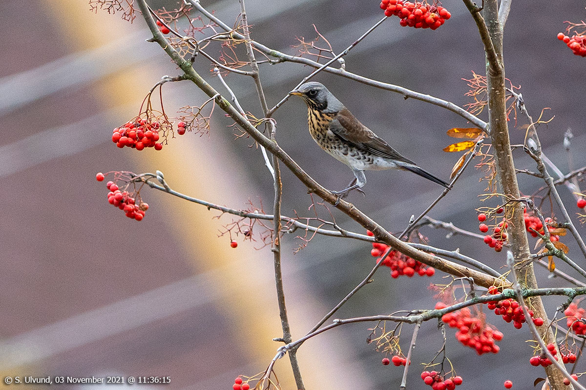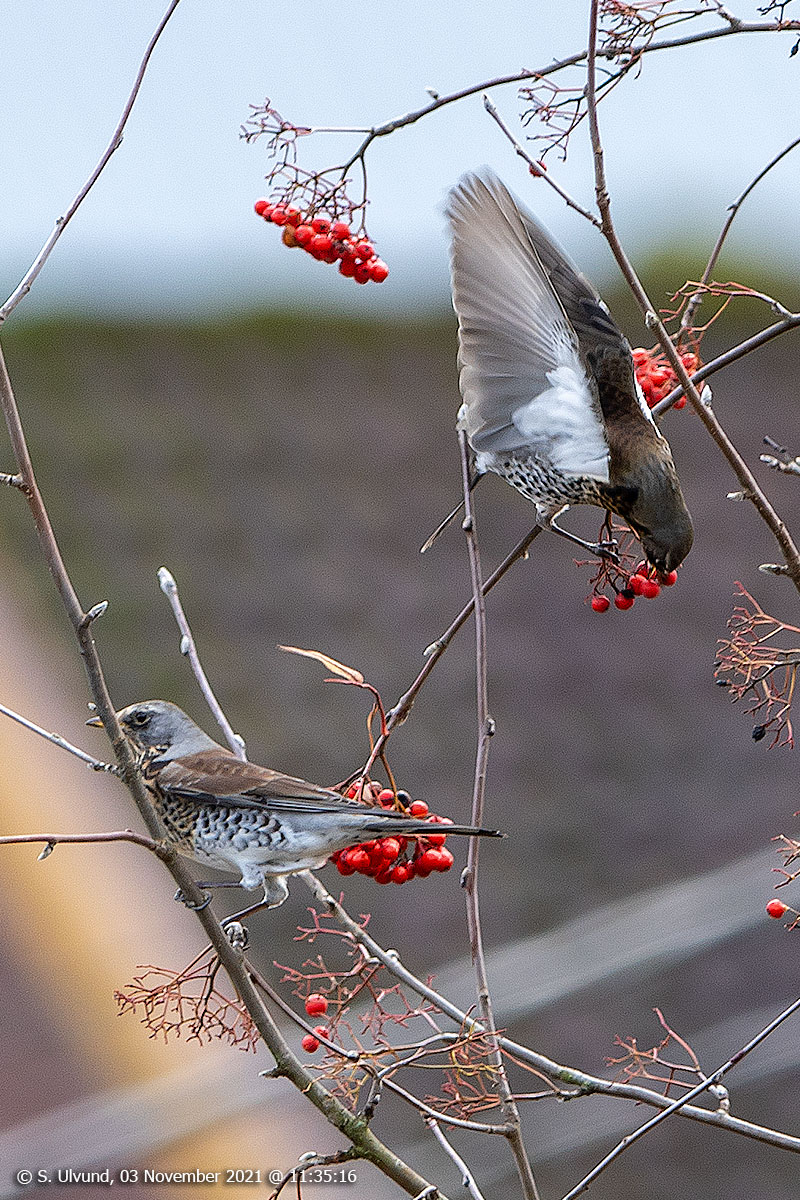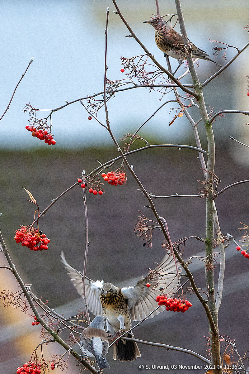 Gråtrost (Turdus pilaris), 03. november 2021, 11:36, +5C (Fauna Fuglar Skulestadmo)