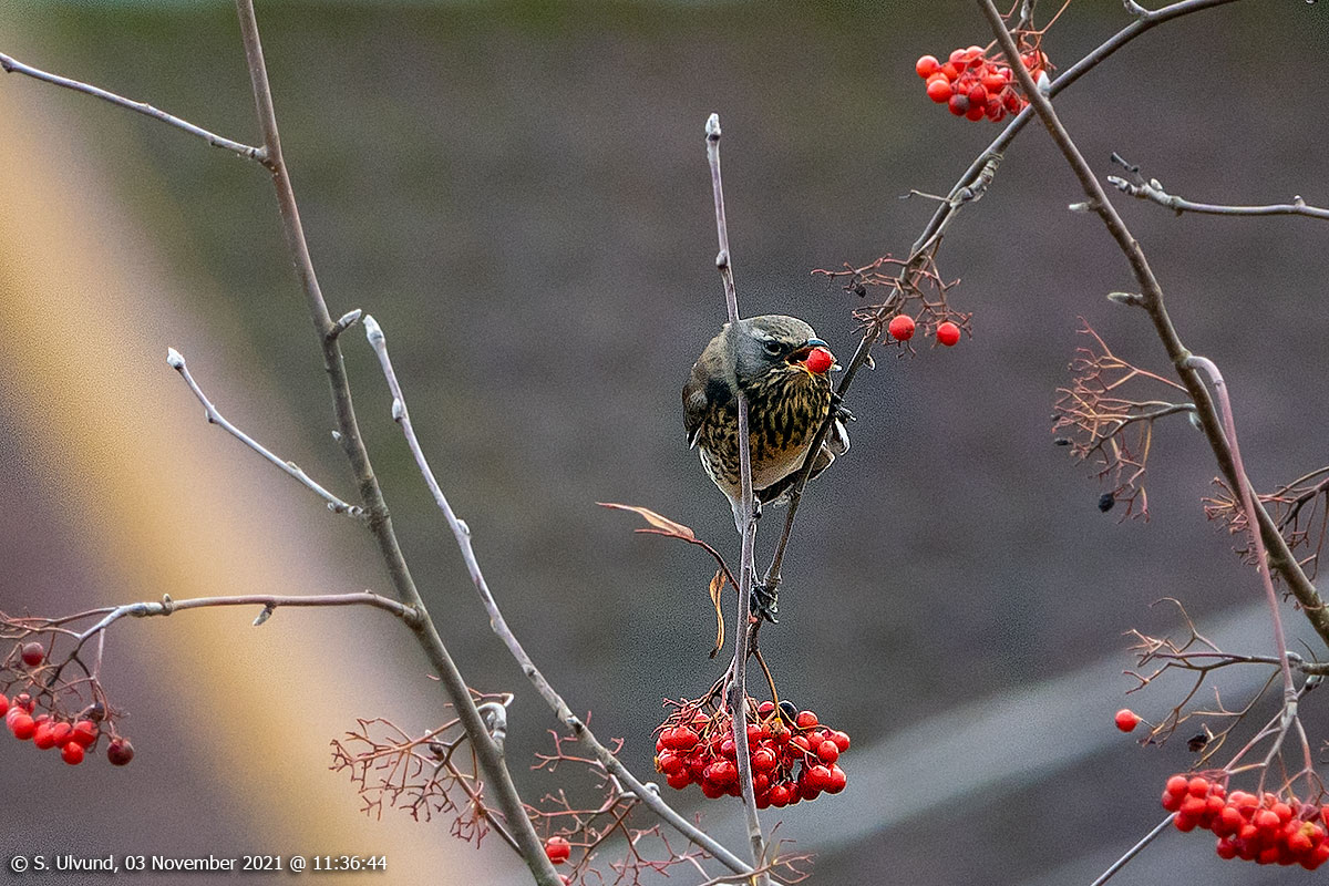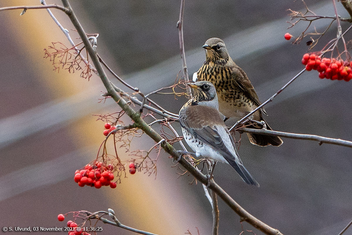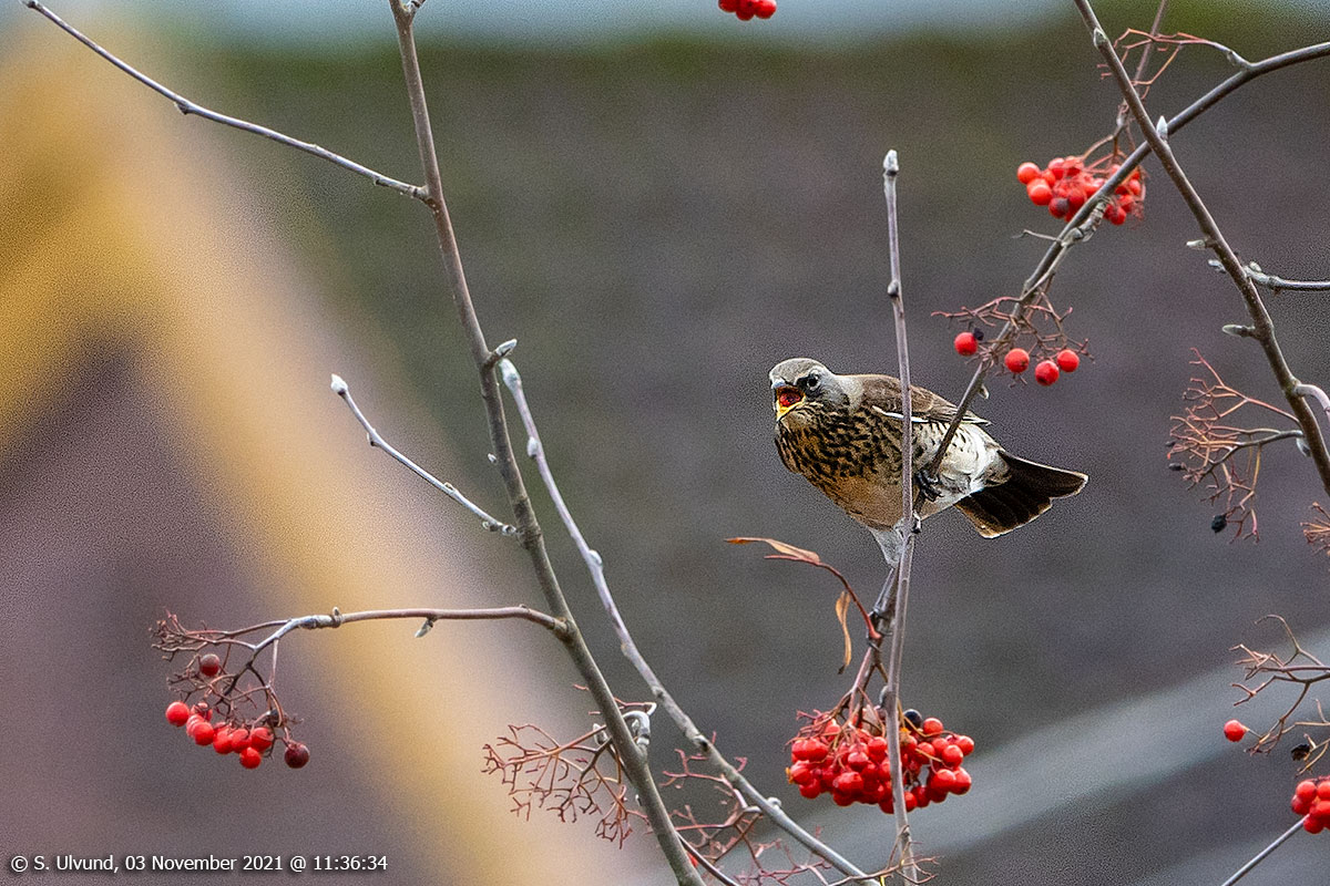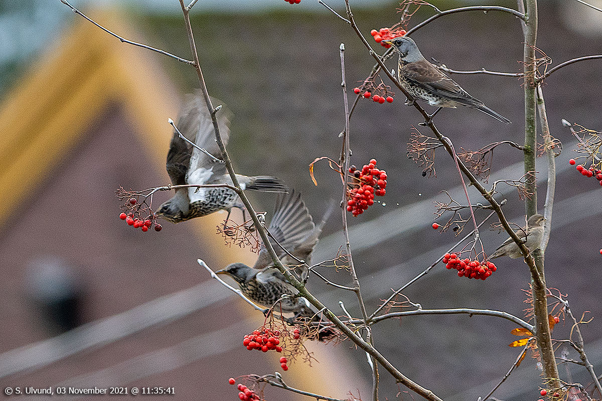 Gråtrost (Turdus pilaris), 03. november 2021, 11:36, +5C (Fauna Fuglar Skulestadmo)