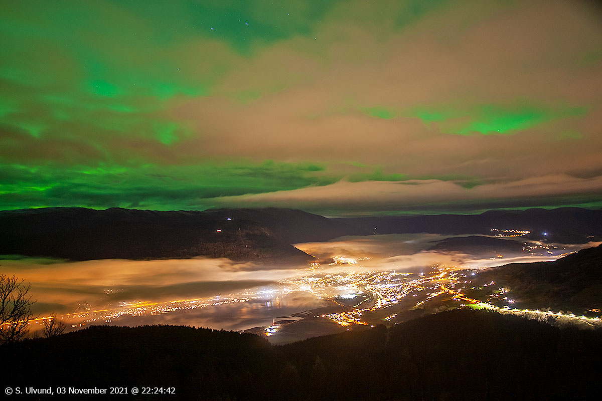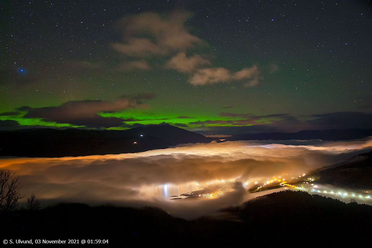 Voss frå Roset, 03. november 2021, 01:59 (Nattstemning)Voss frå Roset, 03. november 2021, 04:19 (Nattstemning)Voss frå Roset, 03. november 2021, 08:24 (Morgonstemning)Voss frå Roset, 03. november 2021, 22:24, +4C (Kveldsstemning med Nordljos)