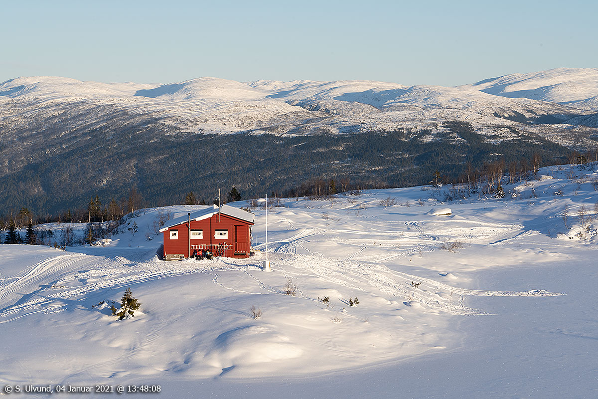 Hangurstoppen mot Voss Gondol og Hangurstoppen Restaurant, 04. januar 2021, 13:19, -6C (Hanguren, Voss)Valbergtjørni og Raude Kross-hytta på Hanguren, 04. januar 2021, 13:48, -6C (Voss)Raude Kross-hytta på Hanguren, 04. januar 202113:48, -6C (Voss)Sol frå blå himmel over Valbergtjørni på Hanguren, 04. januar 202113:48, -6C (Vinterstemning Voss)