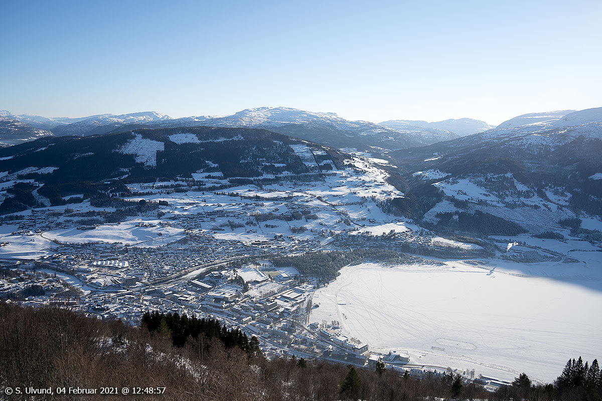 Palmafossen frå Hangurstoppen, 04. februar 2021, (Bømoen Kvitlii Mønshaugen Hanguren)