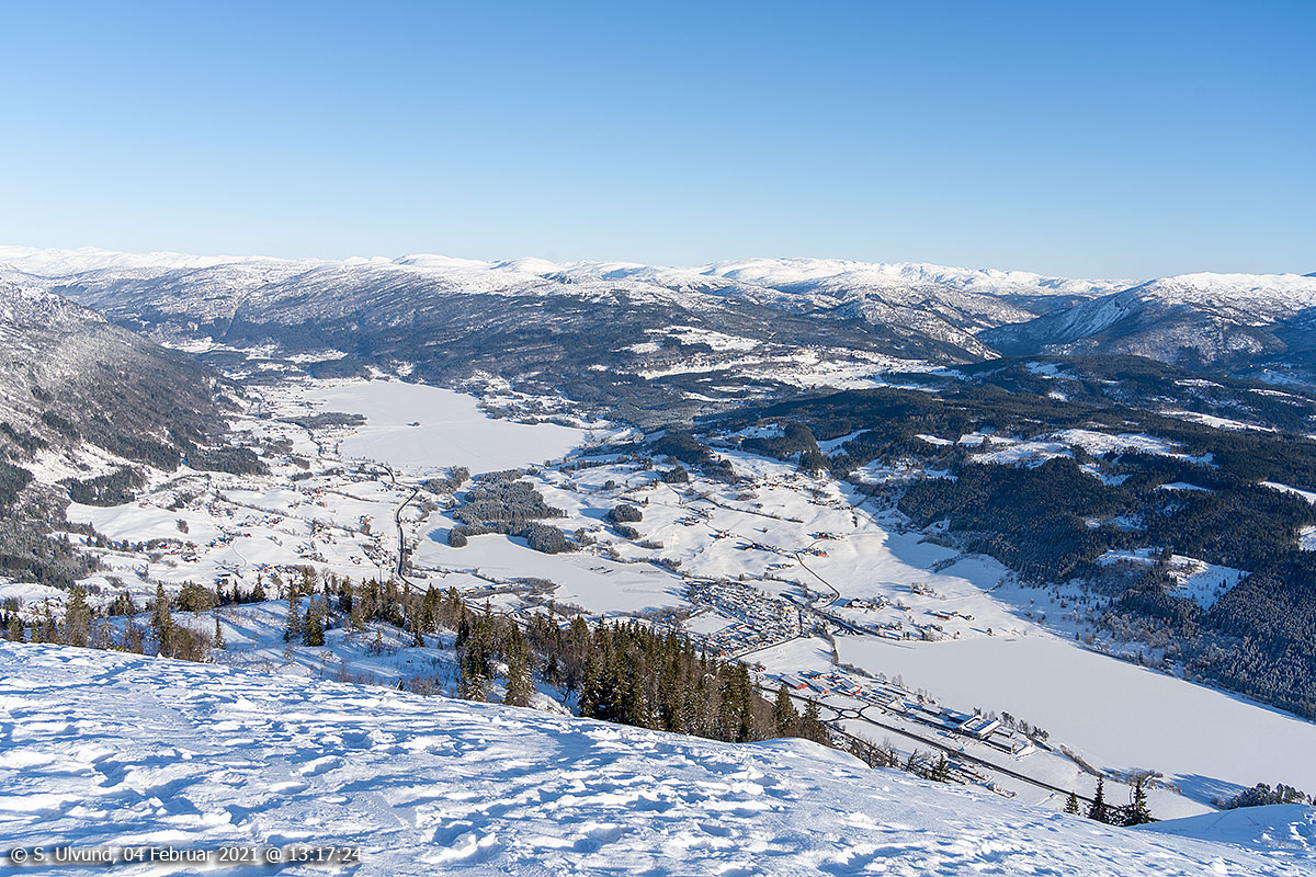 Utsyn frå Hangurstoppen mot Valberget og Slettafjellet, 04. februar 2021, 13:11, -13C (Hanguren Voss)