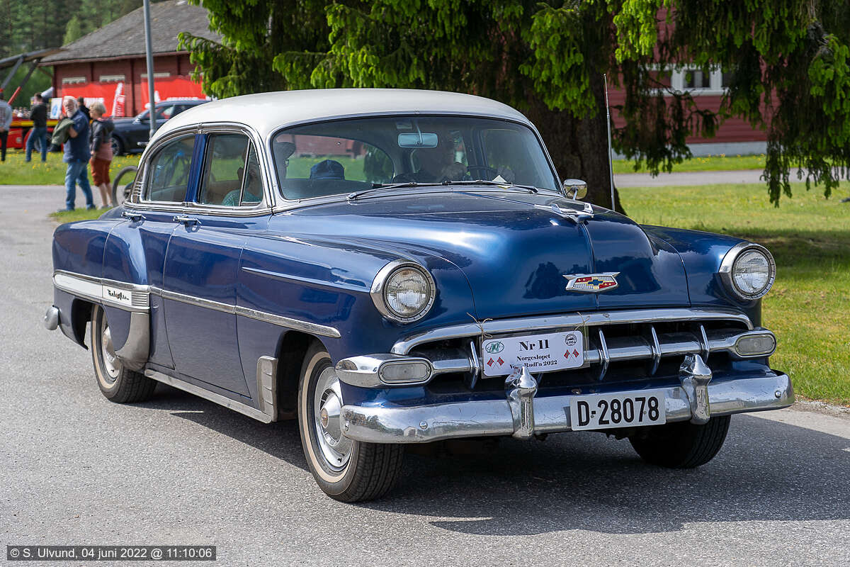 Olav Pettersen Chevrolet Bel Air 4 dørs 1954 D-28078 GBVBiletglimt frå Norgesløpet VossaRudl’n på Bømoen, 04. juni 2022