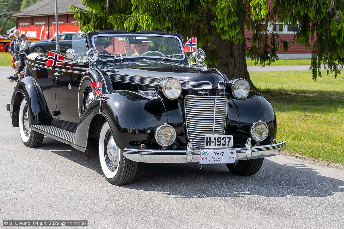 Bente Handeland Chrysler Convertible 1937 H-1937 LSVK Biletglimt frå Norgesløpet VossaRudl’n på Bømoen, 04. juni 2022