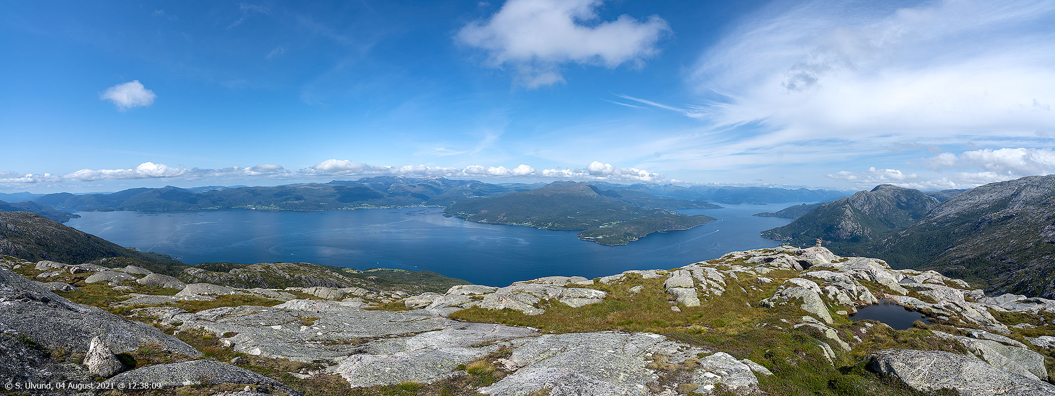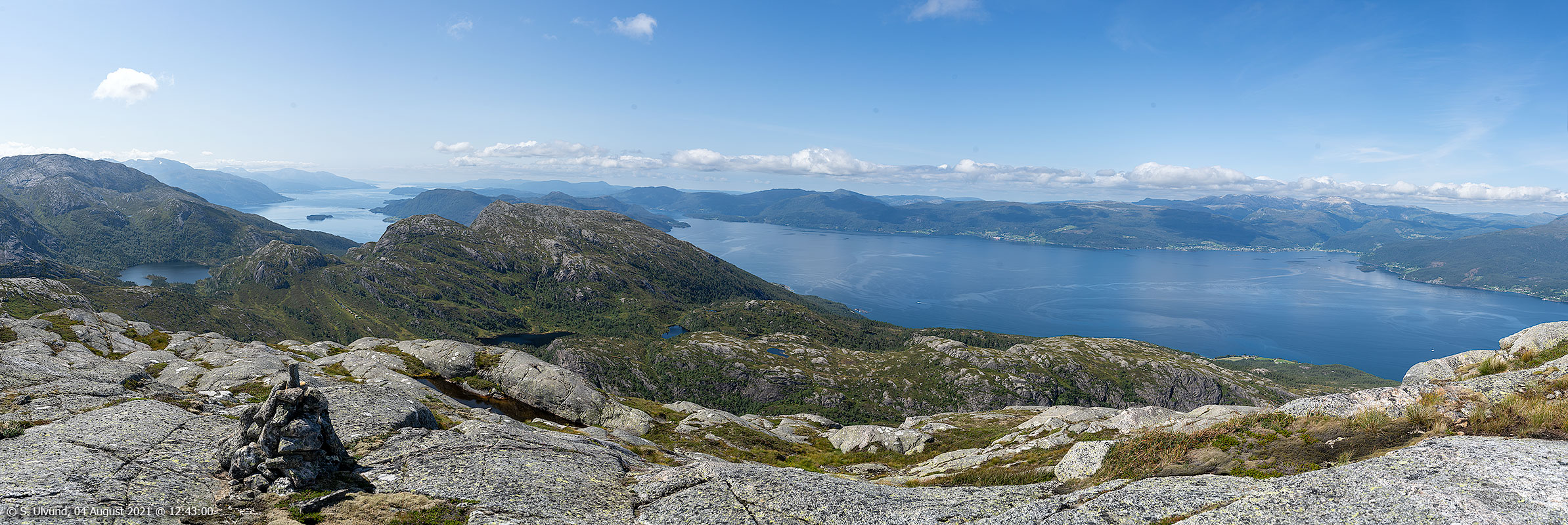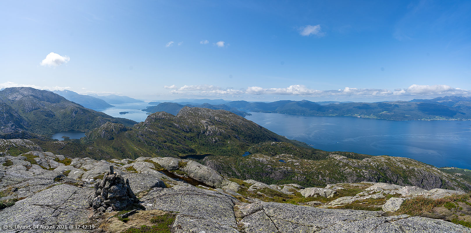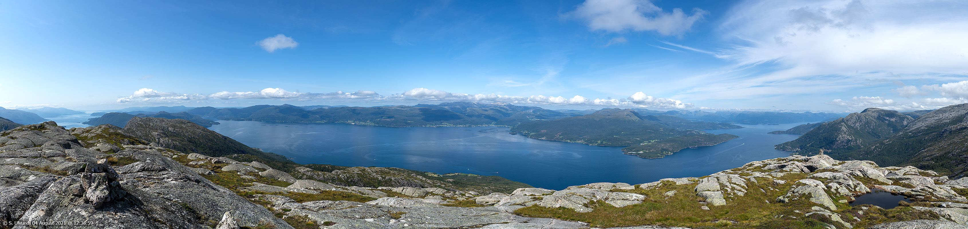 Panorama utsyn frå Gangdasnuten mot Hardangerfjorden.