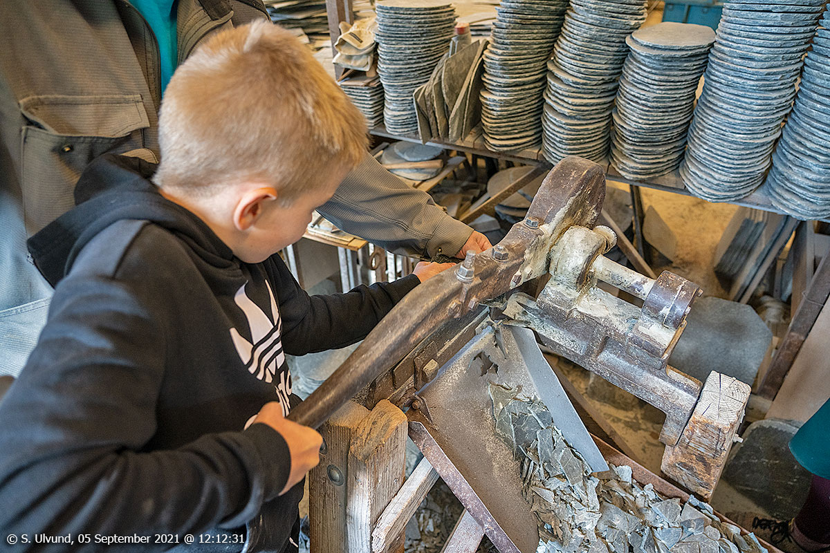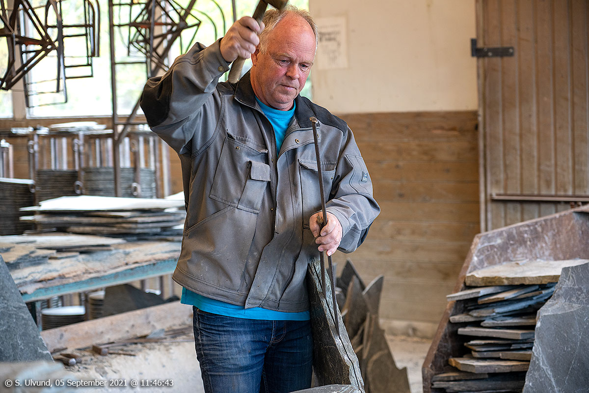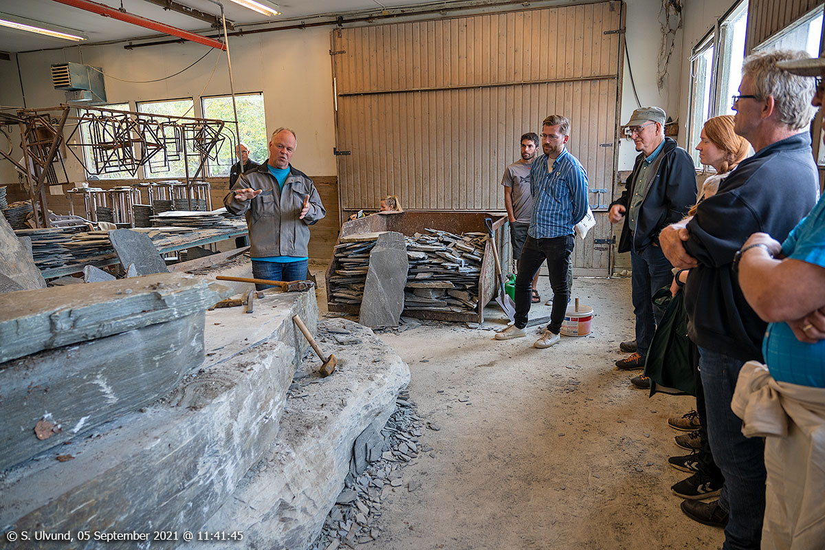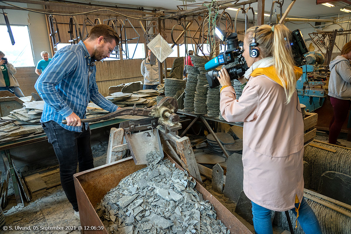 Om skifferdrifta med Ingmar Hårklau, skifferarbeid ved Jan Olav Grevle. Klima- og miljøminister Sveinung Rotevatn kom og på besøk.
