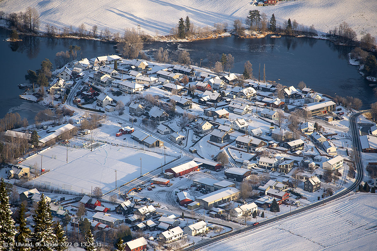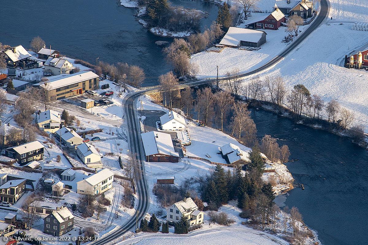 Voss Active (Voss Raftingsenter) og Dugstadbrui sett frå Hangurstoppen, 06. januar 2022, 13:24