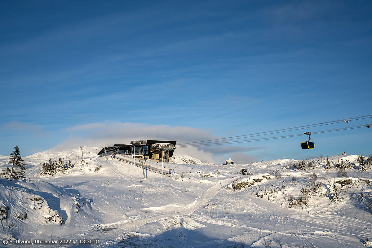 Hangurstoppen mot Voss Gondol og Hangurstoppen Restaurant, 06. januar 2022, -8C (Hanguren, Voss)