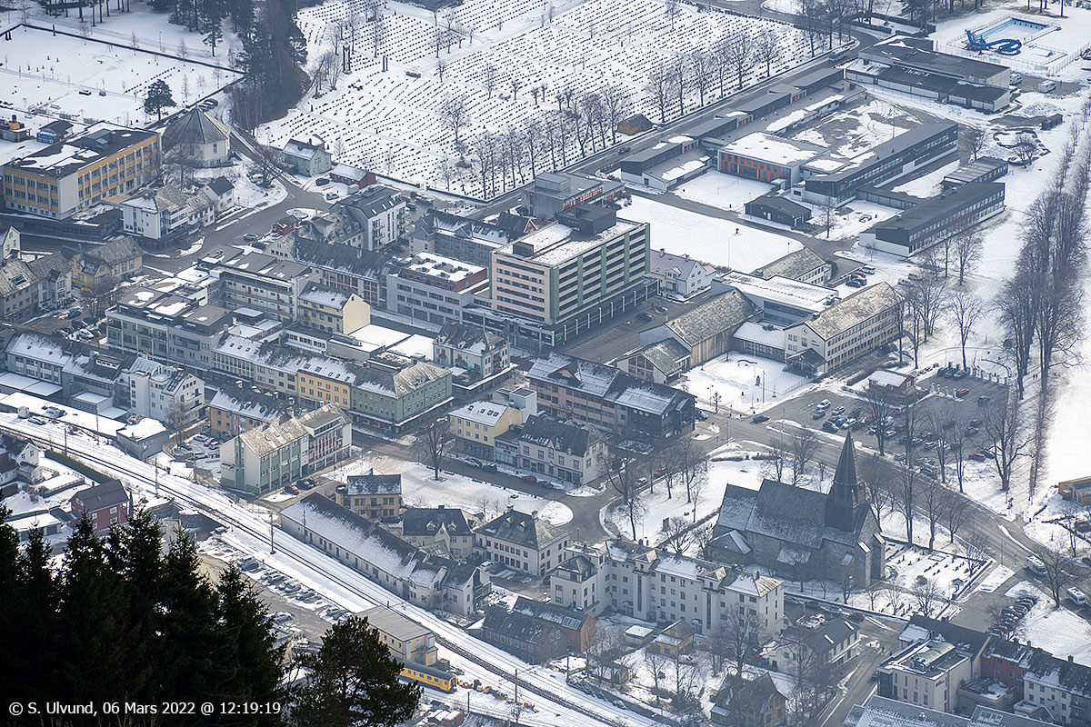 Voss frå gamle Hangursrestauranten, 06. mars 2022, 12:17, Nede 0CVoss sentrum med Torget sett frå Hanguren, 06. mars 2022, 12:19, 0CVoss sentrum med Sverresplass sett frå Hanguren, 06. mars 2022, 12:19, 0CHaugamoen med Amfi-senteret sett frå Hanguren, 06. mars 2022, 12:22, Nede 0C (Voss)Bryn, Haugateigen og Nedre Storehagen sett frå Hanguren, 06. mars 2022, 12:17, 0C (Voss)