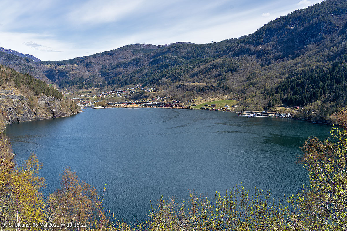 Utsyn mot Granvinsfjorden og Granvin frå Hardangervegen, 06. mai 2021, 13:13 (Granvin)