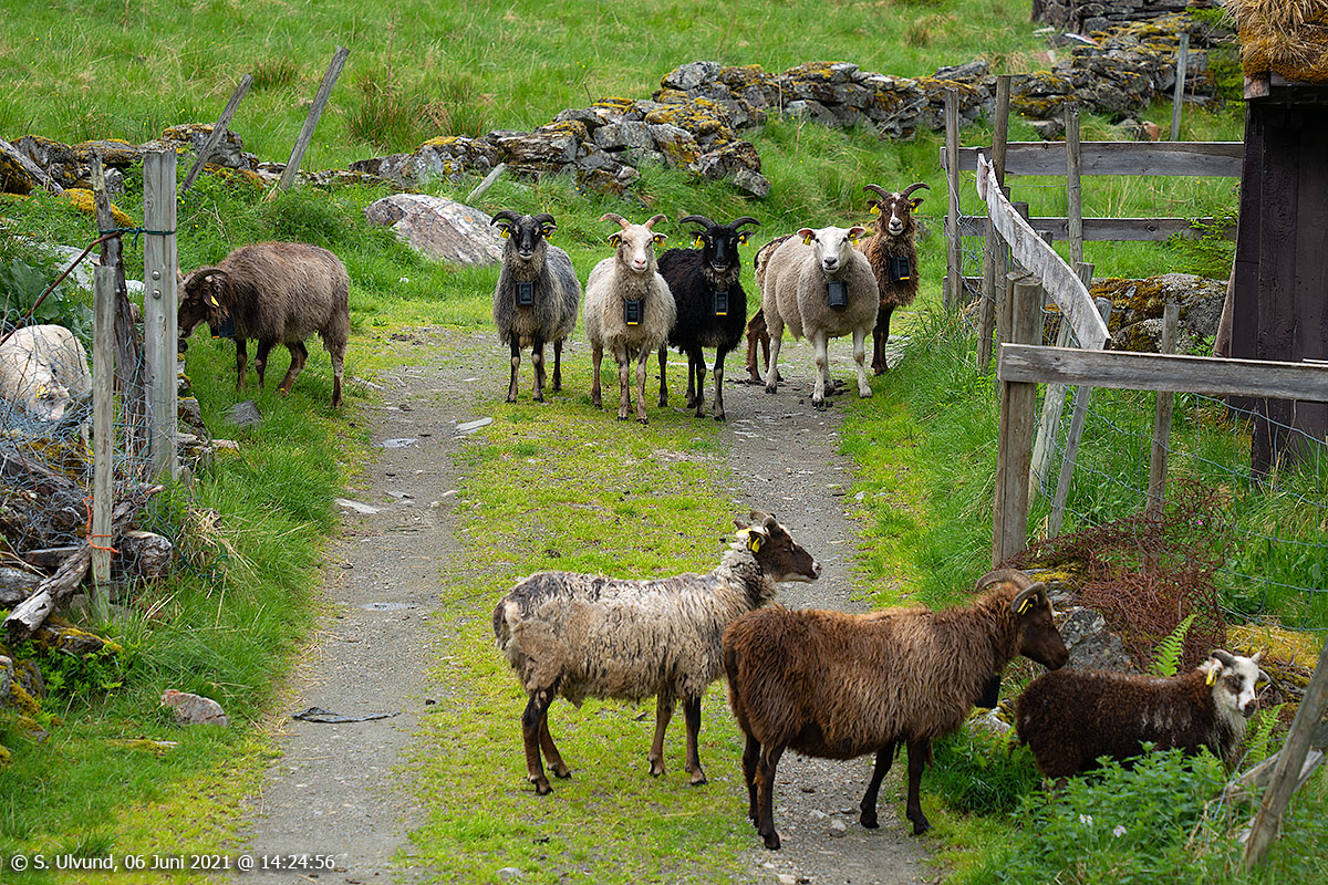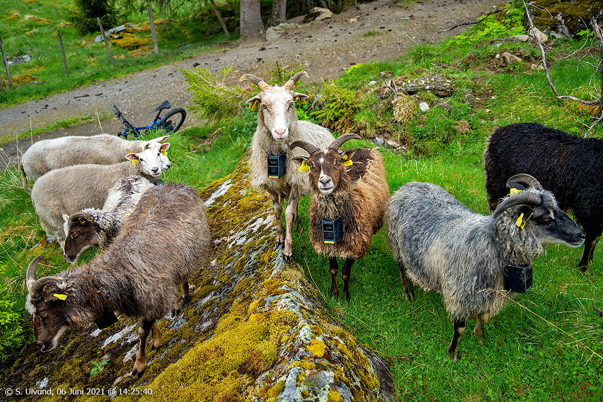 Nyfikne Villsauer ved Indre Dale stølar, 06. juni 2021, 14:25 (Dyrvedalen Fauna Husdyr)