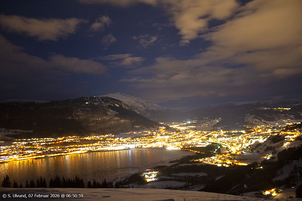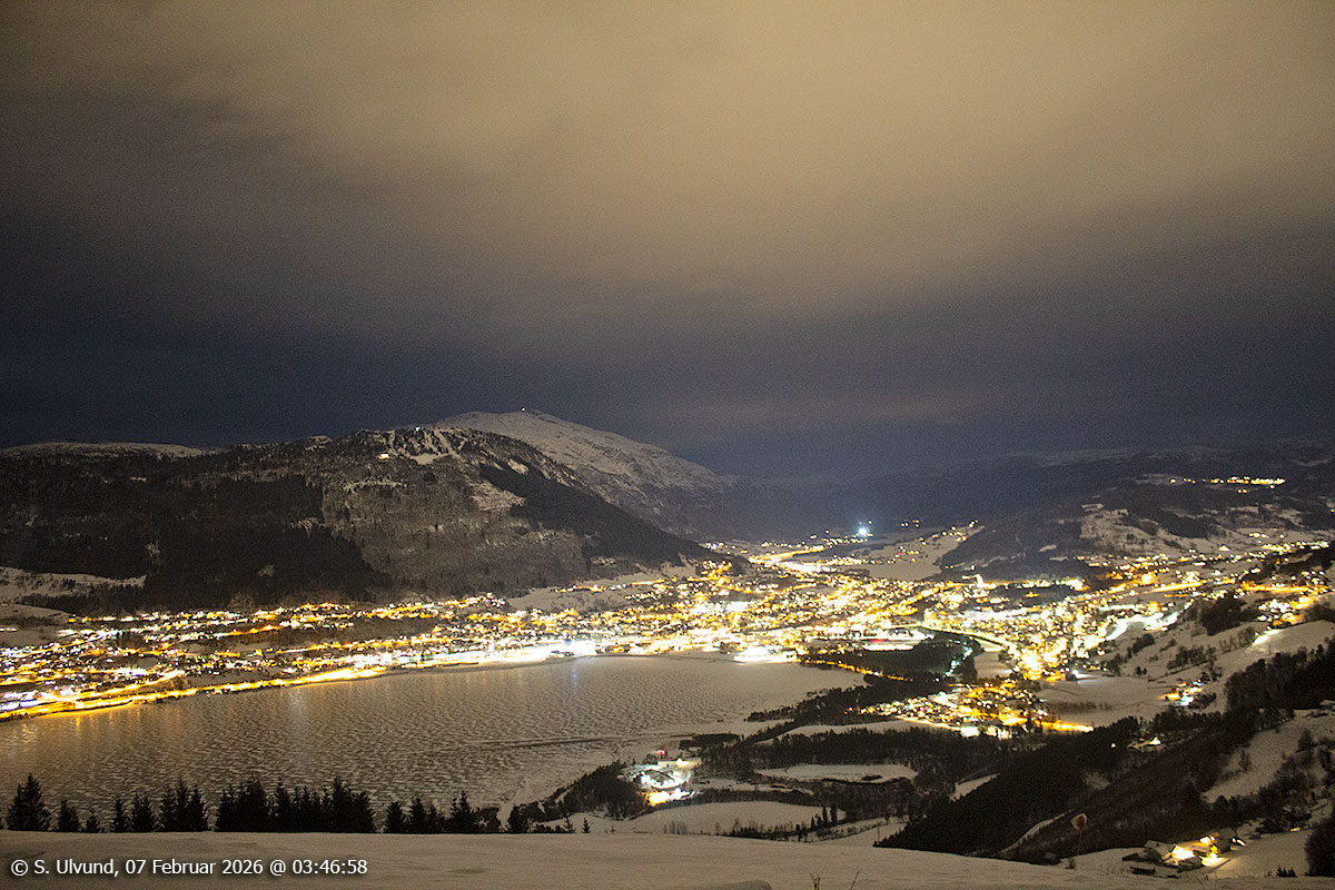 Voss sett ovanfor Gjelle, 07. februar 2026, 03:46, -3C