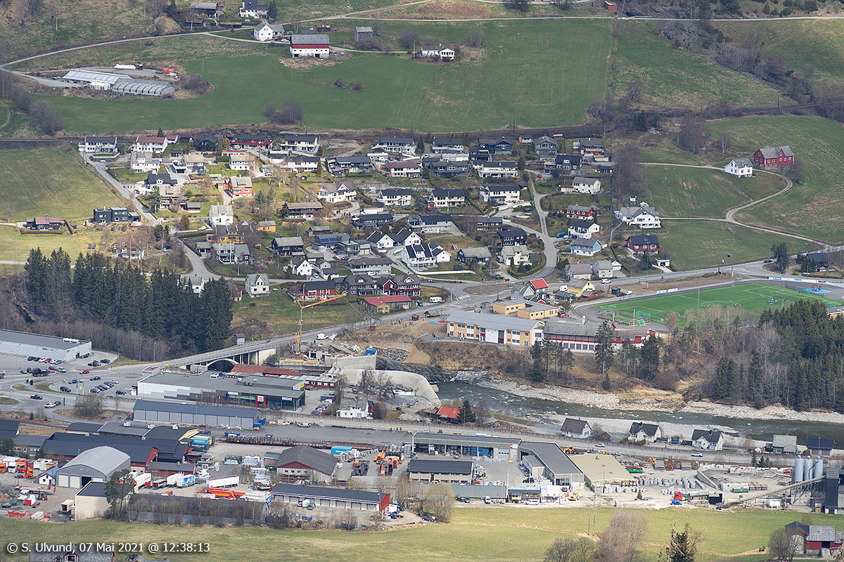 Voss sentrum sett frå Songvesåsen, 07. mai 2021, 12:36, +10C (Sonvesåsen)