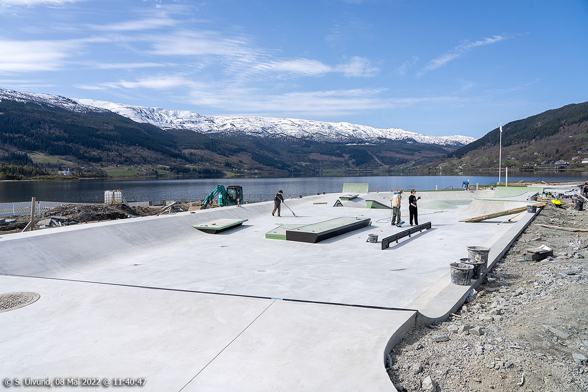 Finpussing på skateboard arena/rampen i aktivitetsparken,08. mai 2022, 11:40, +9C (Voss)