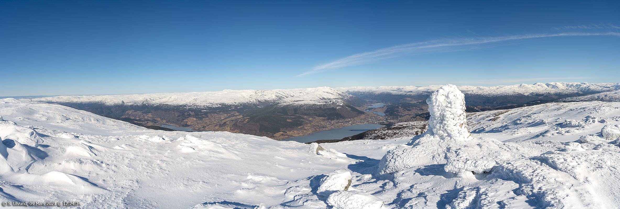 Voss sett frå Gråsidetoppen 1308 moh., 09. mars 2021, 12:24 (Gråsida Panorama)
