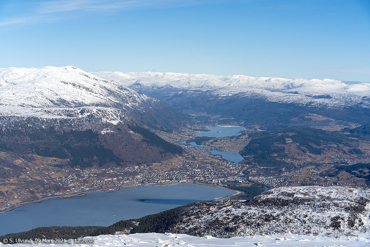 Voss sett frå Gråsidetoppen 1308 moh, 09. mars 2021, 12:25 (Gråsida)