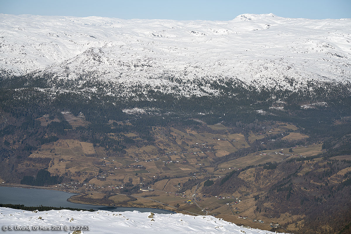 Bulken, Vestbygdi, Dyrvedalen og Gossland sett nedanfor Sandfjellet, 09. mars 2021, 13:34 (Voss)