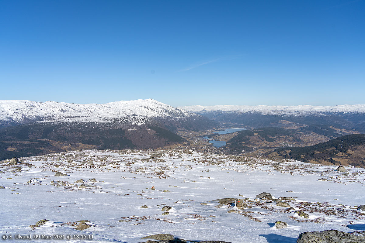 Dyrvedalen sett frå Gråsidetoppen 1308 moh, 09. mars 2021, 12:27 (Gråsida Bulken)
