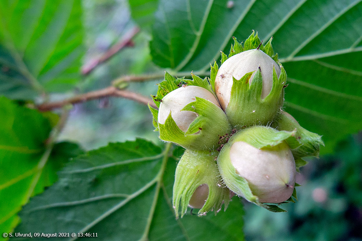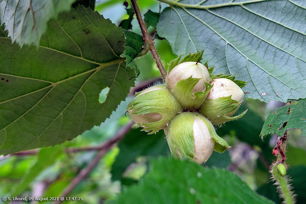 Frukten av hunnblomsten, hasselnøtt kan høstes og spises. De inneholder fett, protein og noe B-vitaminer. Oljen i nøttene kan brukes industrielt for å framstille matolje, såpe og oljefarger. Innhøstingen av nøttene gjøres når de er modne. Modne nøtter blir litt gulbrune i skallet og faller lett fra treet. Nøttesnutebillen legger egg i nøttene, derfor bør nøtter med hull i skallet sorteres ut. Nøtter som skal lagres må tørkes for å kunne oppbevares noen måneder. Tørkes de for fort eller for lenge kan de skrumpe inn og taper kvalitet, tørkes de for lite kan de mugne. Lagres de for lenge kan de harskne. Nøtter som har skrumpet inn under tørking kan bløtlegges før bruk, da vil de svelle igjen