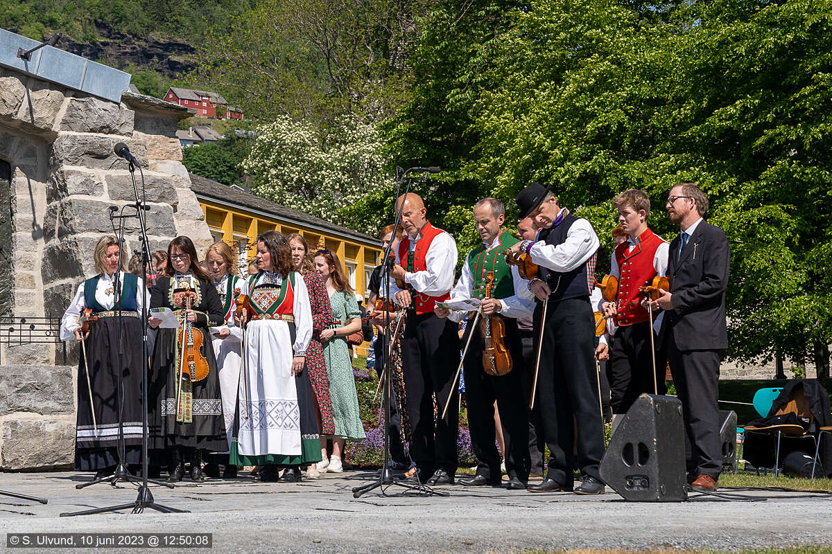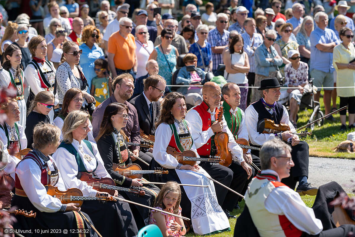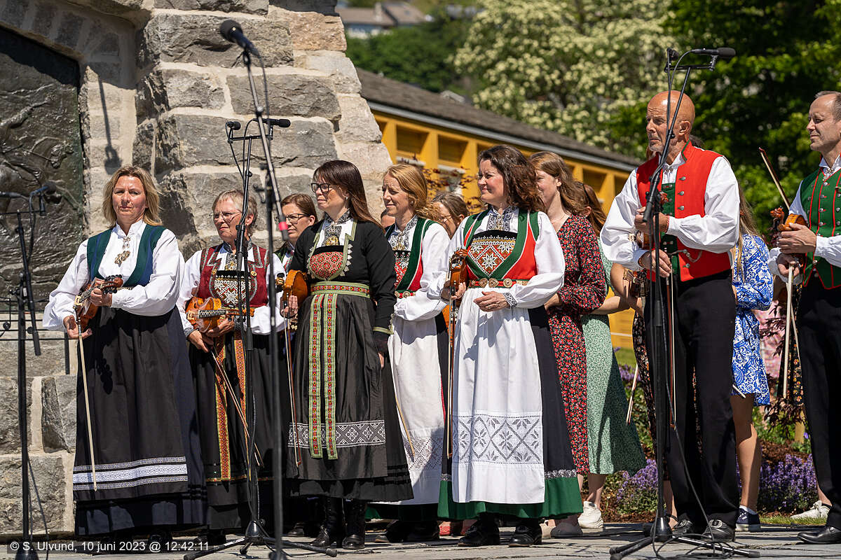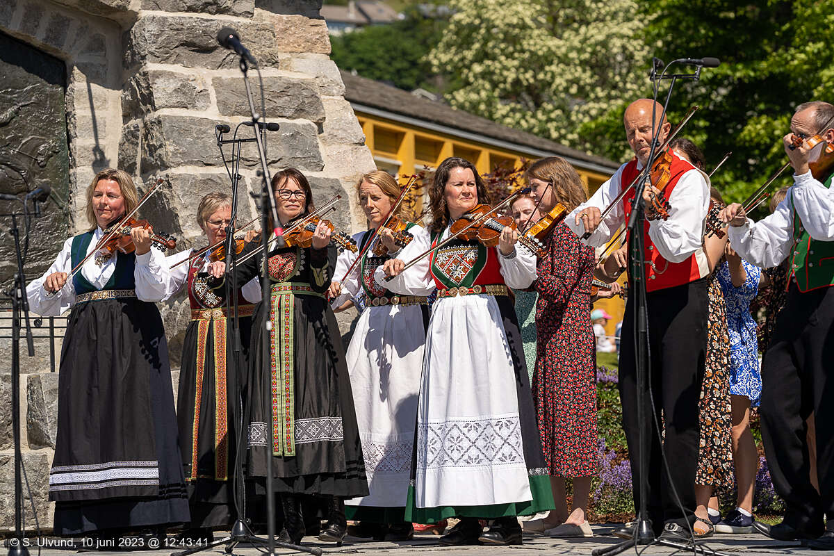 I was happy to see my distant cousin, Alexander Røynstrand, playing his fiddle in your photos of the unveiling of Nils Bergslien’s monument. I hope to see the monument in person one day.