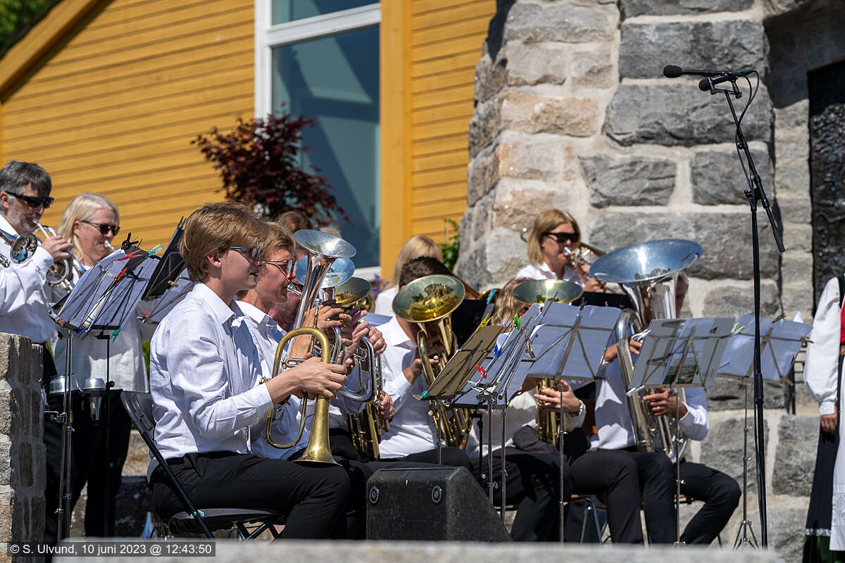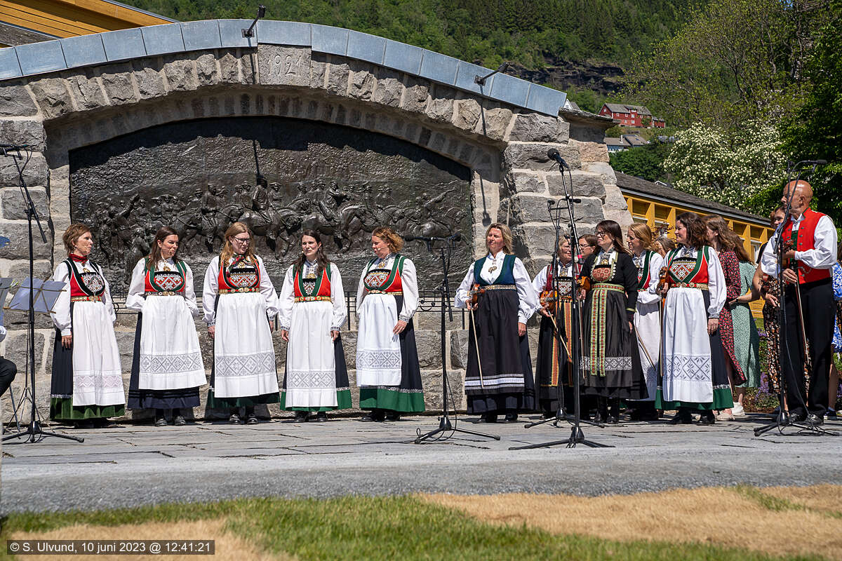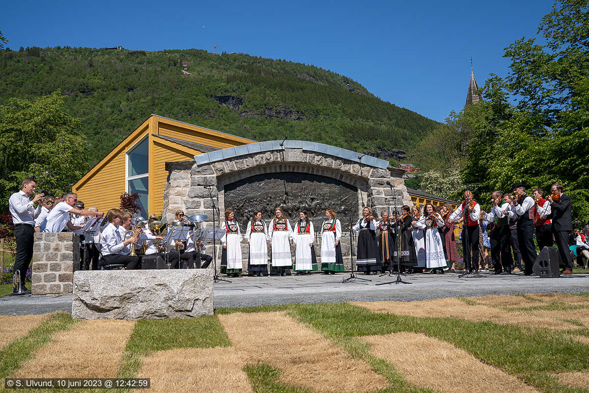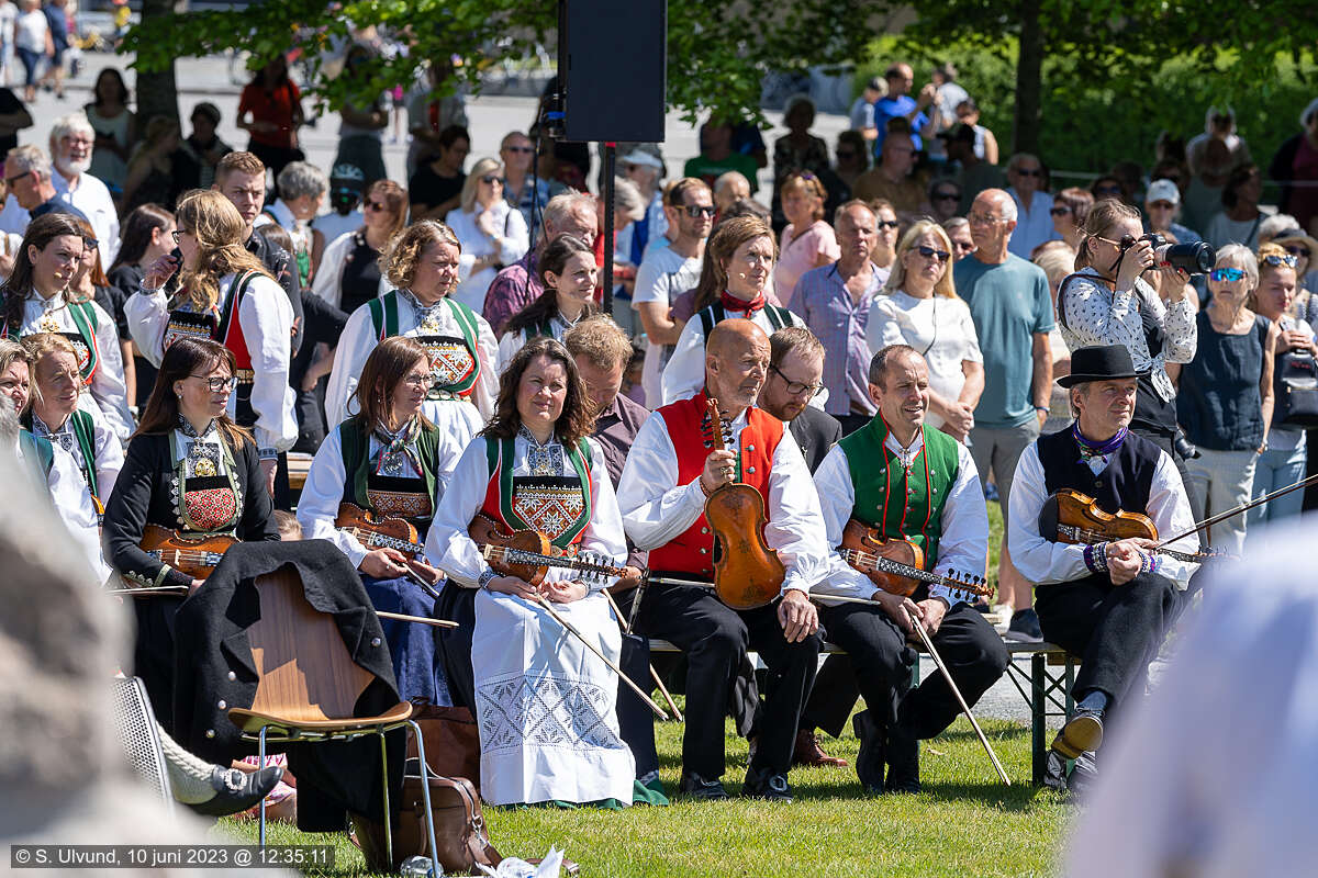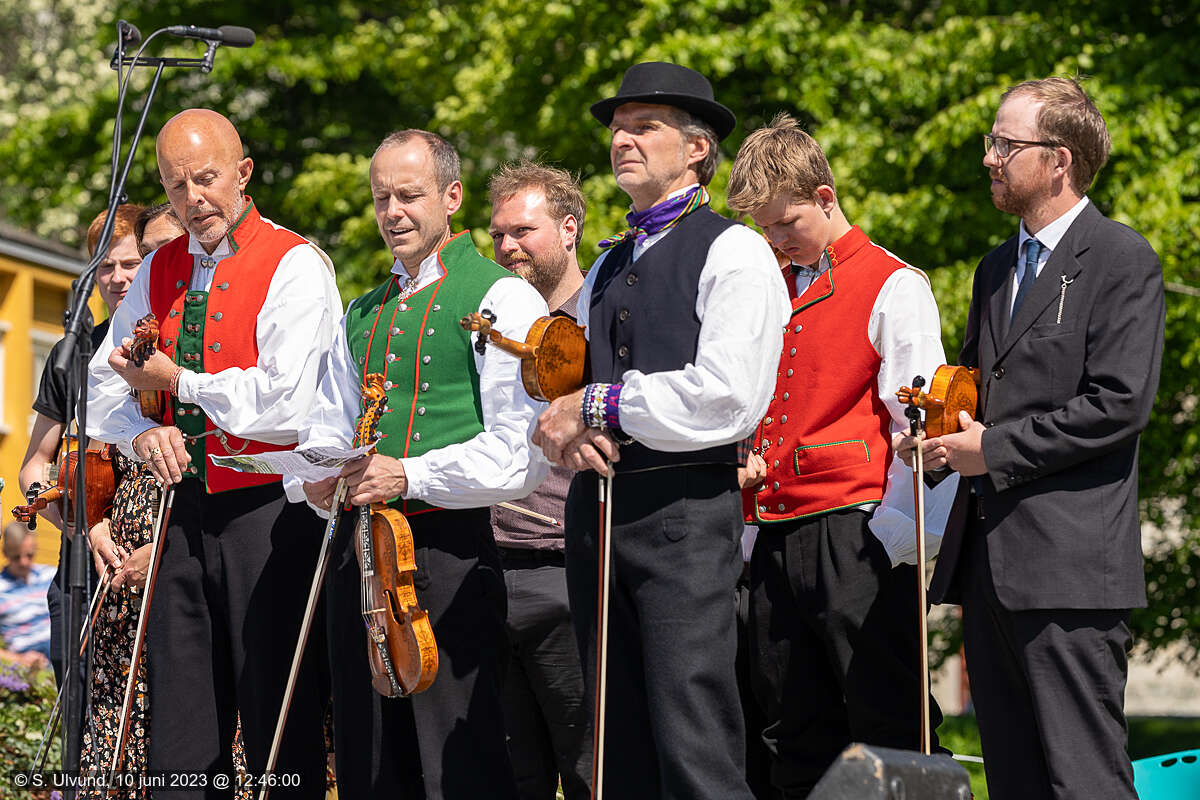 I was happy to see my distant cousin, Alexander Røynstrand, playing his fiddle in your photos of the unveiling of Nils Bergslien’s monument. I hope to see the monument in person one day.