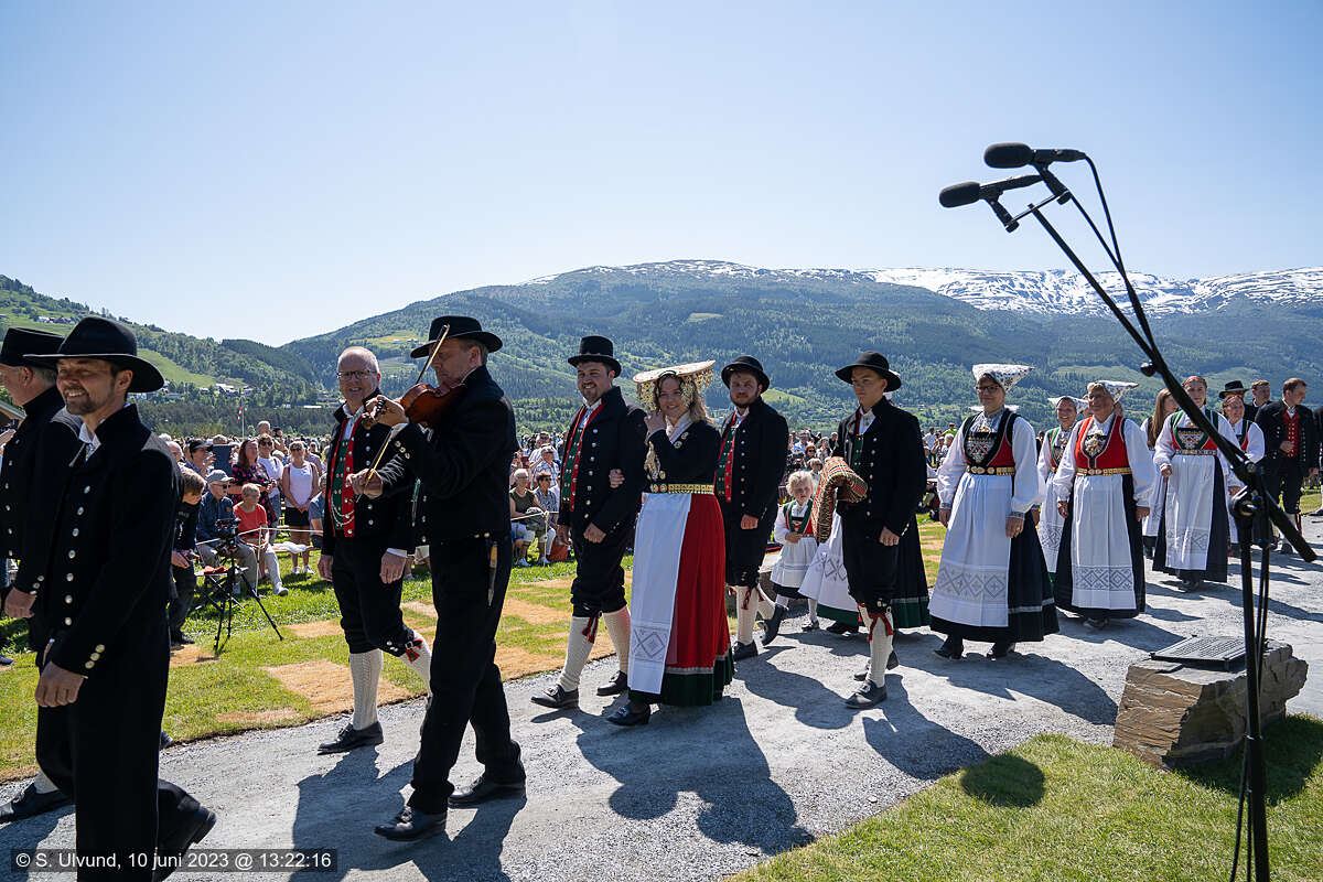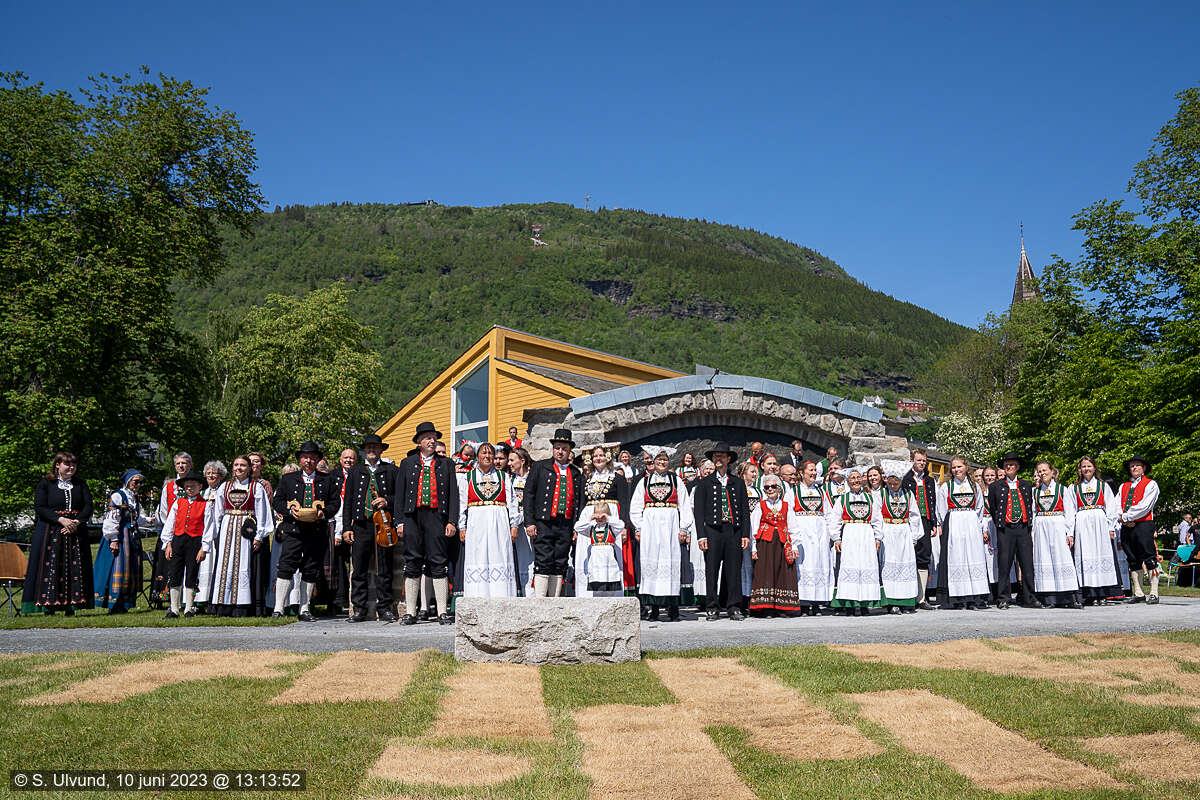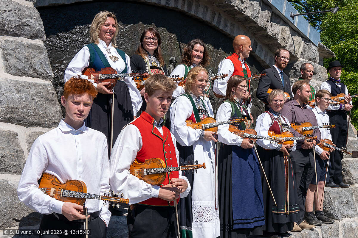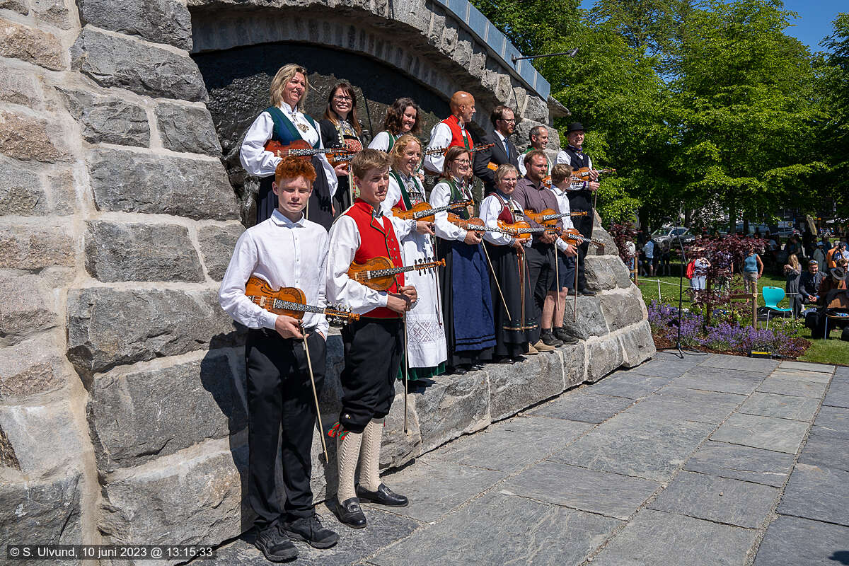 I was happy to see my distant cousin, Alexander Røynstrand, playing his fiddle in your photos of the unveiling of Nils Bergslien’s monument. I hope to see the monument in person one day.