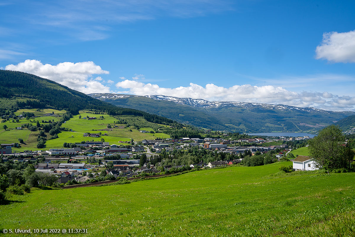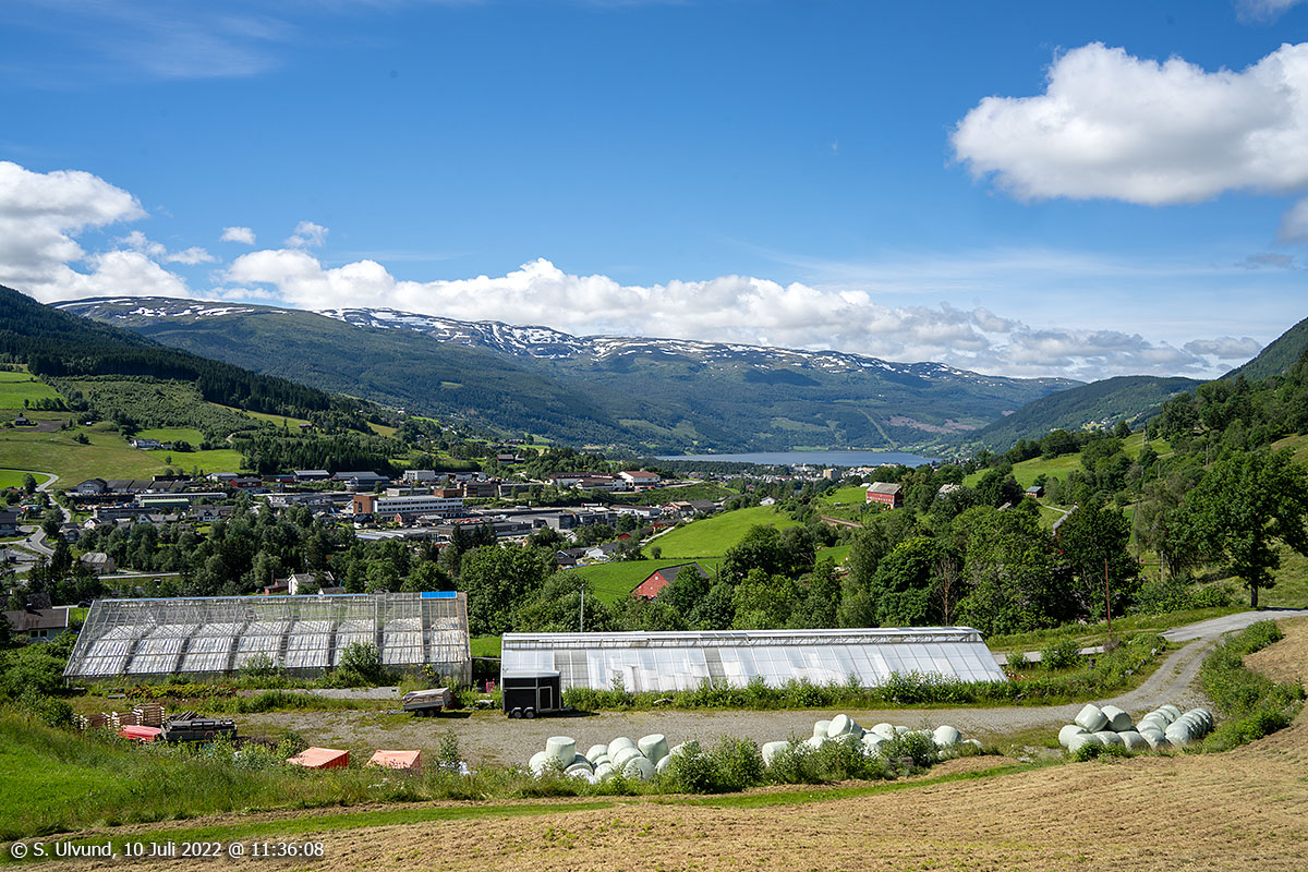 Palmafossen og Voss sett frå Rykke, 10. juli 2022, 11:37, +17C