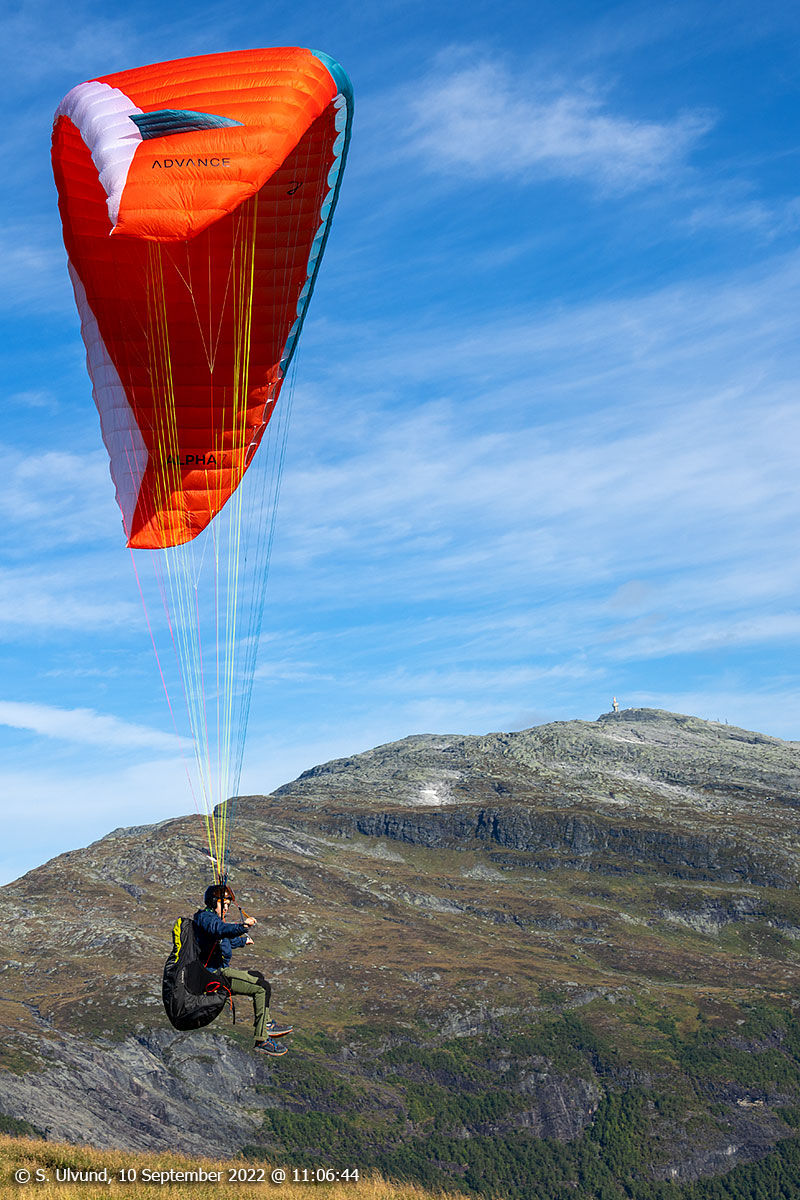 Paraglider på veg ut frå Hangurstoppen, 10. september 2022, 11:06 (Hanguren)