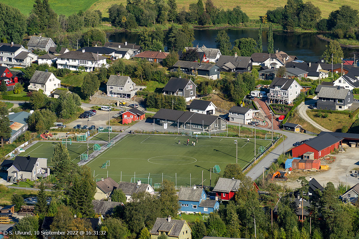 Skulestadmo (Fotballbaner) sett frå Bavallen, 10. september 2022, 16:31, +19C