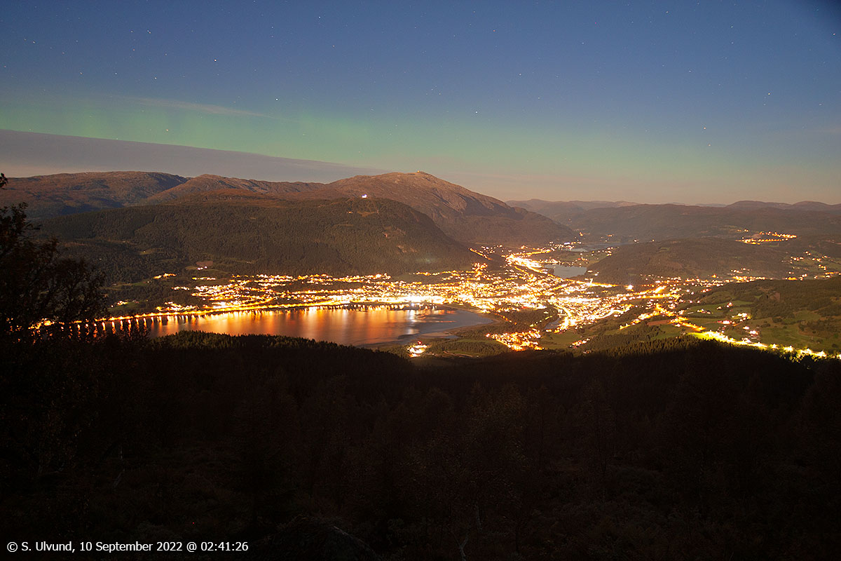 Voss frå Roset i måneskinn og Nordljos, 10. september 2022, 02:41