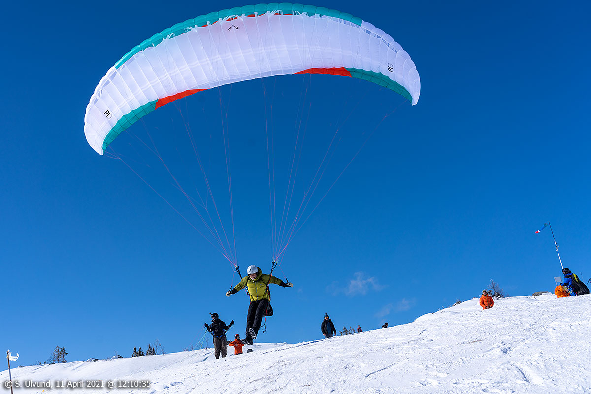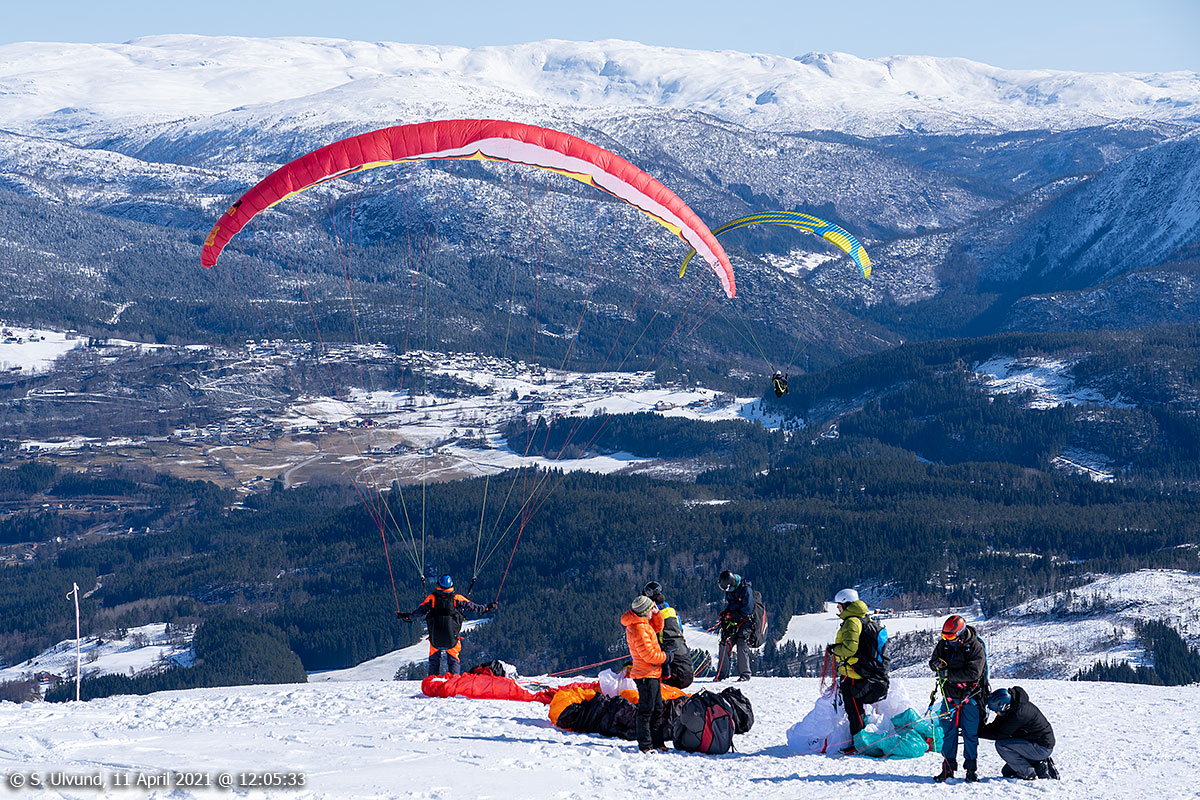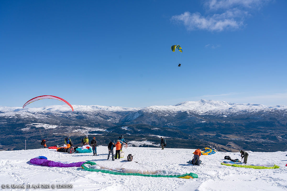 Paraglidere på Hangurstoppen, 11. april 2021, 12:05, -4C (Voss)Paraglidere på Hangurstoppen, 11. april 2021, 12:05, -4C (Voss)