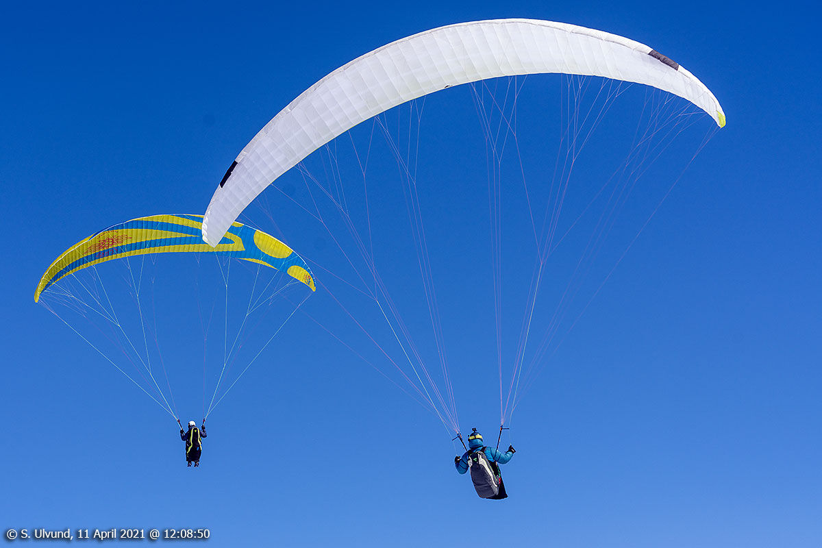Paraglidere i lufta over på Hangurstoppen, 11. april 2021, 12:08, -4C (Voss)Paraglidere i lufta over på Hangurstoppen, 11. april 2021, 12:08, -4C (Voss)Paraglider i lufta over på Hangurstoppen, 11. april 2021, 12:09, -4C (Voss)Paraglider på veg ut frå Hangurstoppen, 11. april 2021, 12:10, -4C (Voss)