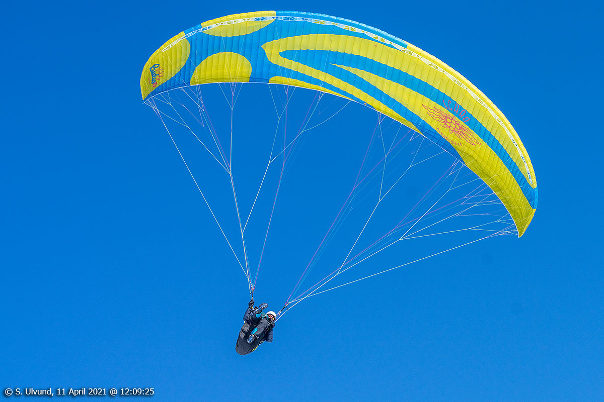 Paraglider på Hangurstoppen, 11. april 2021, 12:04, -4C (Voss)