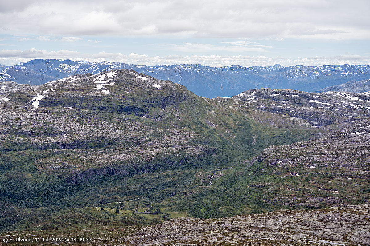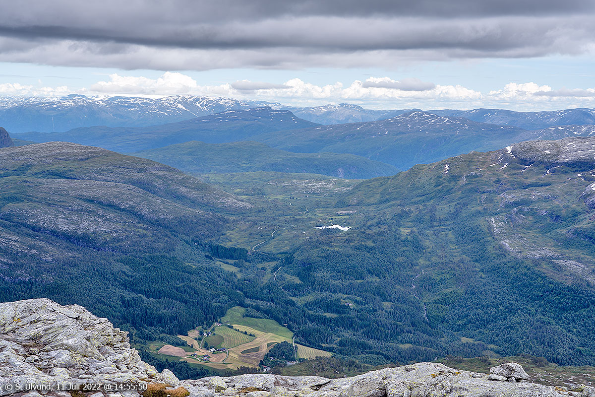 Utsyn frå Toftanipa/Eggjane mot Storavatnet og Rong.