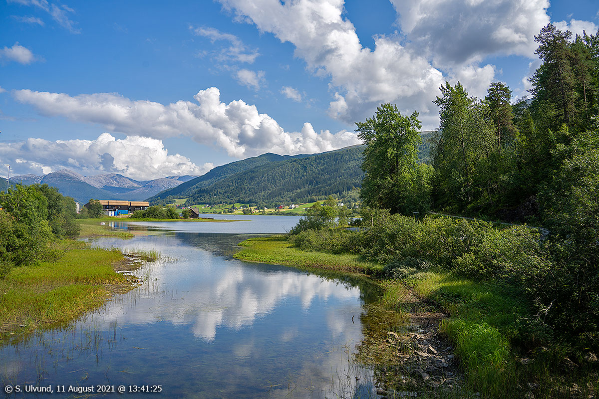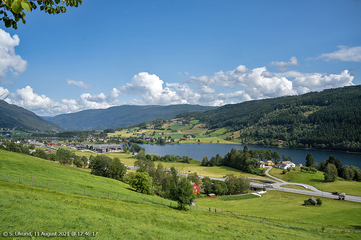 Oppheimsvatnet mot Framnes og Vasstrondi, 11. august 2021, 13:41