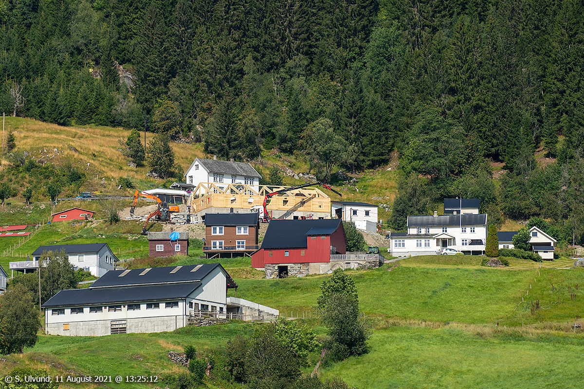 Ny løe under oppføring på Herheim, 11. august 2021, 13:25, (Vossestrand)