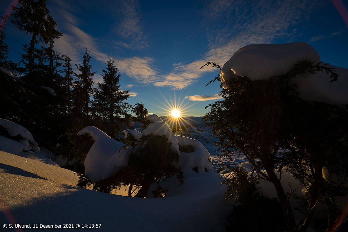 Solnedgang over Hangurstoppen, 11. desember 2021, 14:34 (Stemningsbilete Hanguren Voss)
