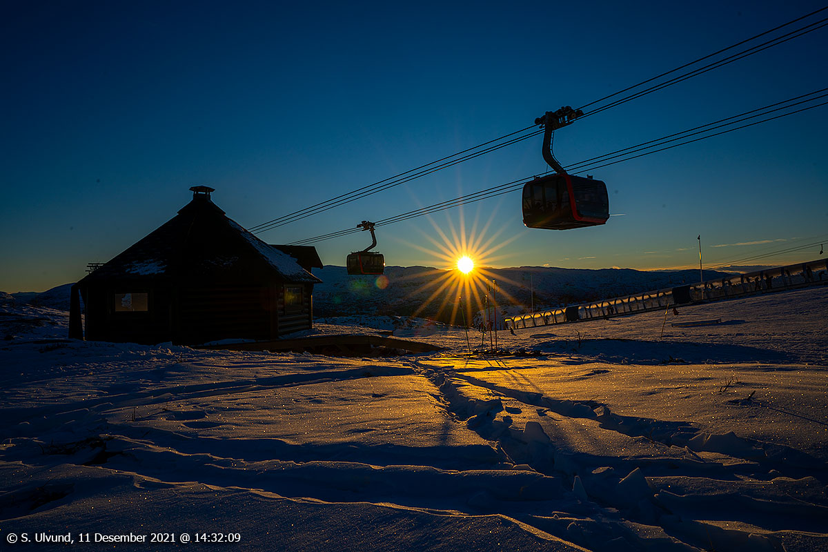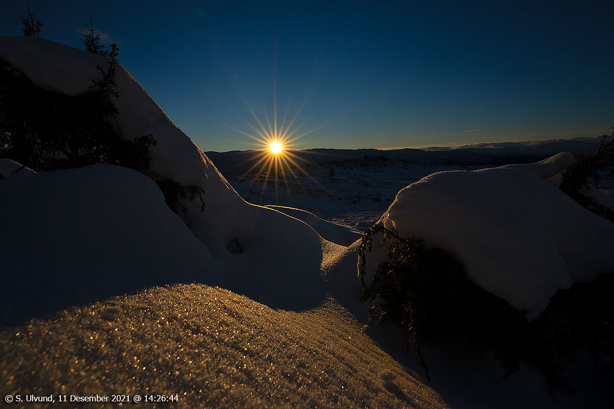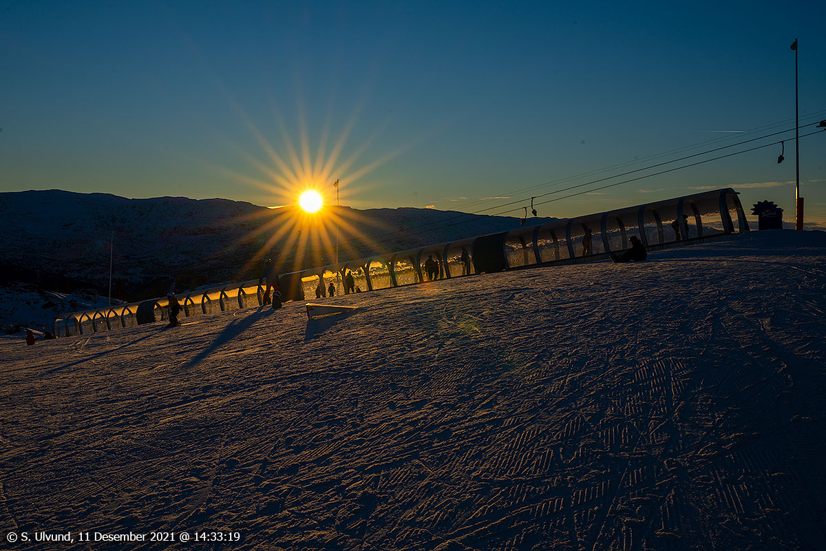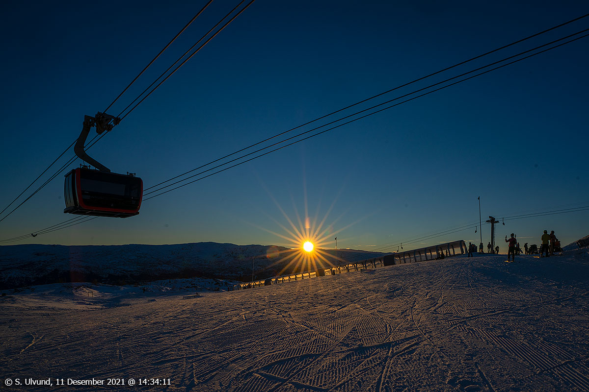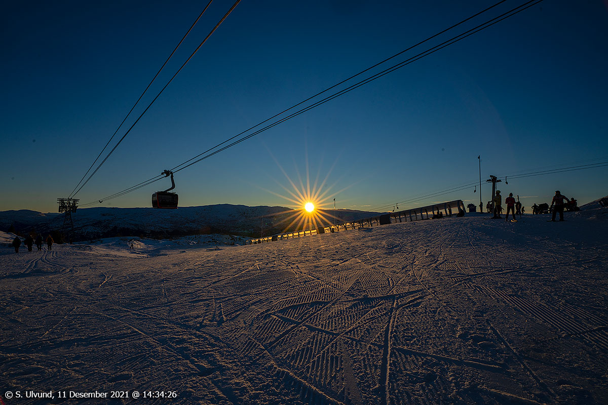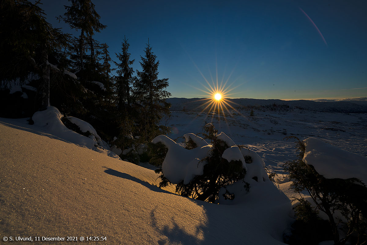 Solnedgang over Hangurstoppen, 11. desember 2021, 14:11 (Stemningsbilete Hanguren Voss)