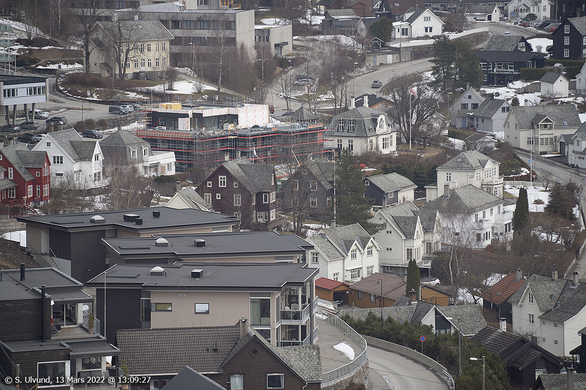 Voss sentrum sett frå Hanguren, 13. mars 2022, 12:36, +10C