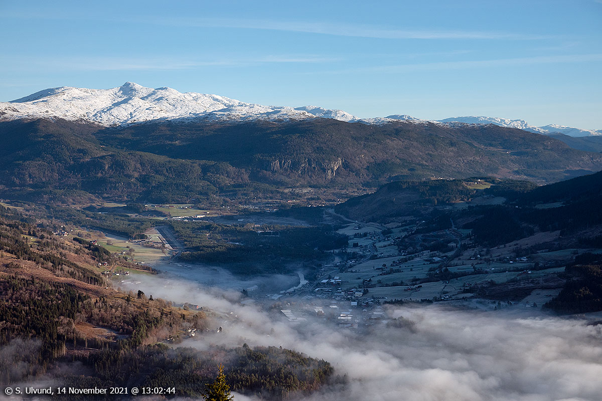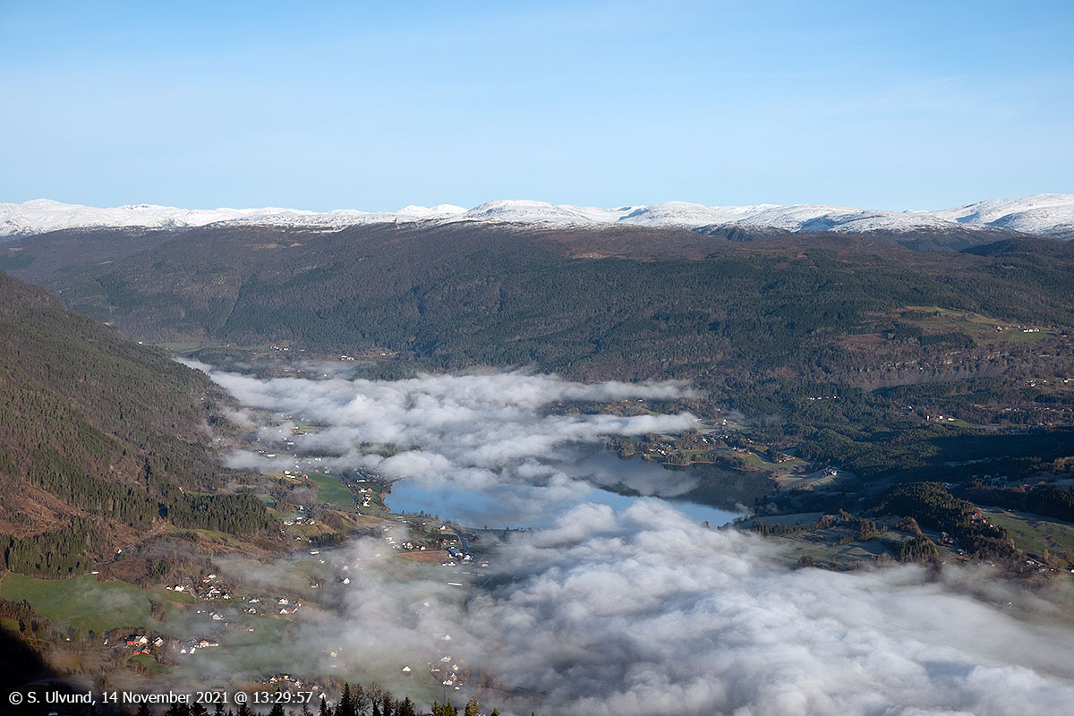 Voss ligg i dag under eit hav av skodde sett frå Hanguren, 14. november 2021, 13:03